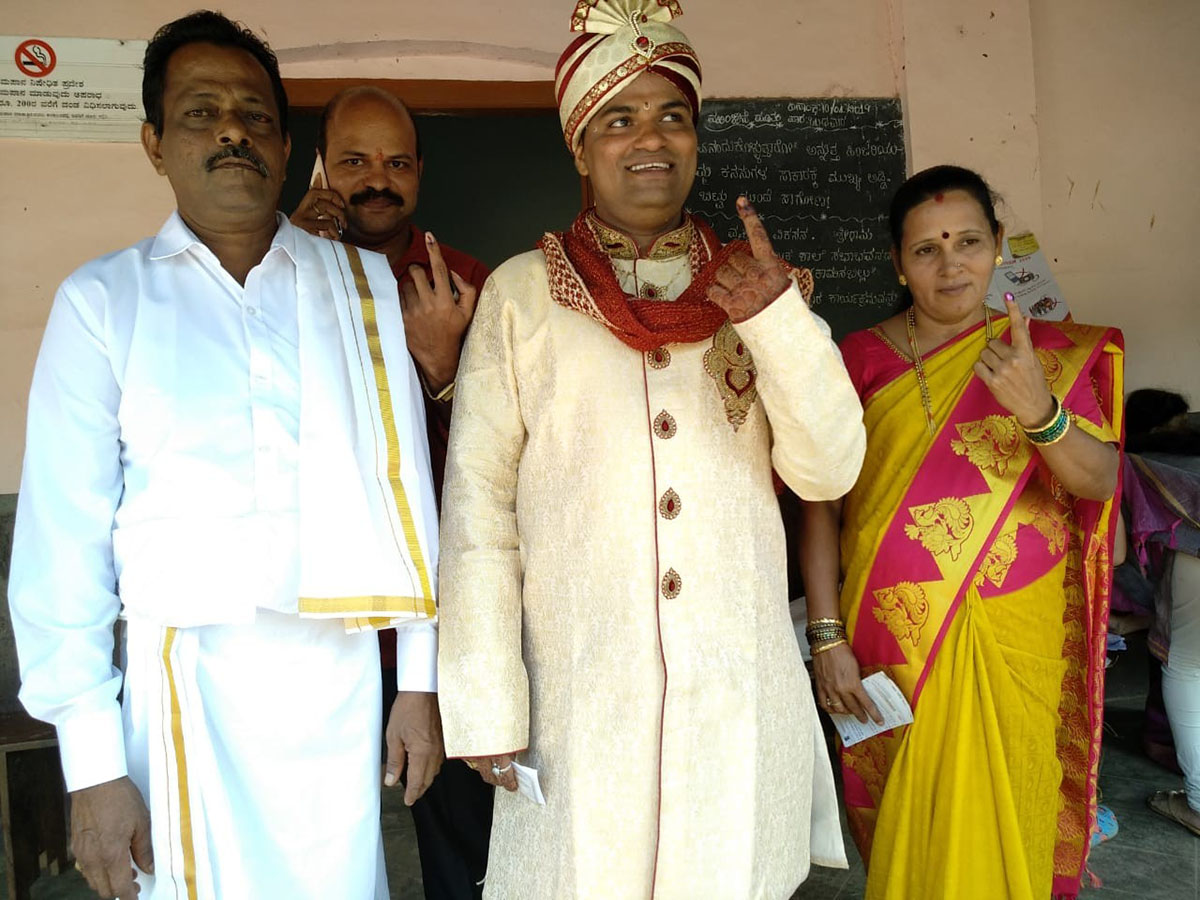 ಉಡುಪಿ: ಮತದಾನದ ಹಕ್ಕು ಚಲಾಯಿಸಿದ ನೂತನ ವಧು, ವರರು