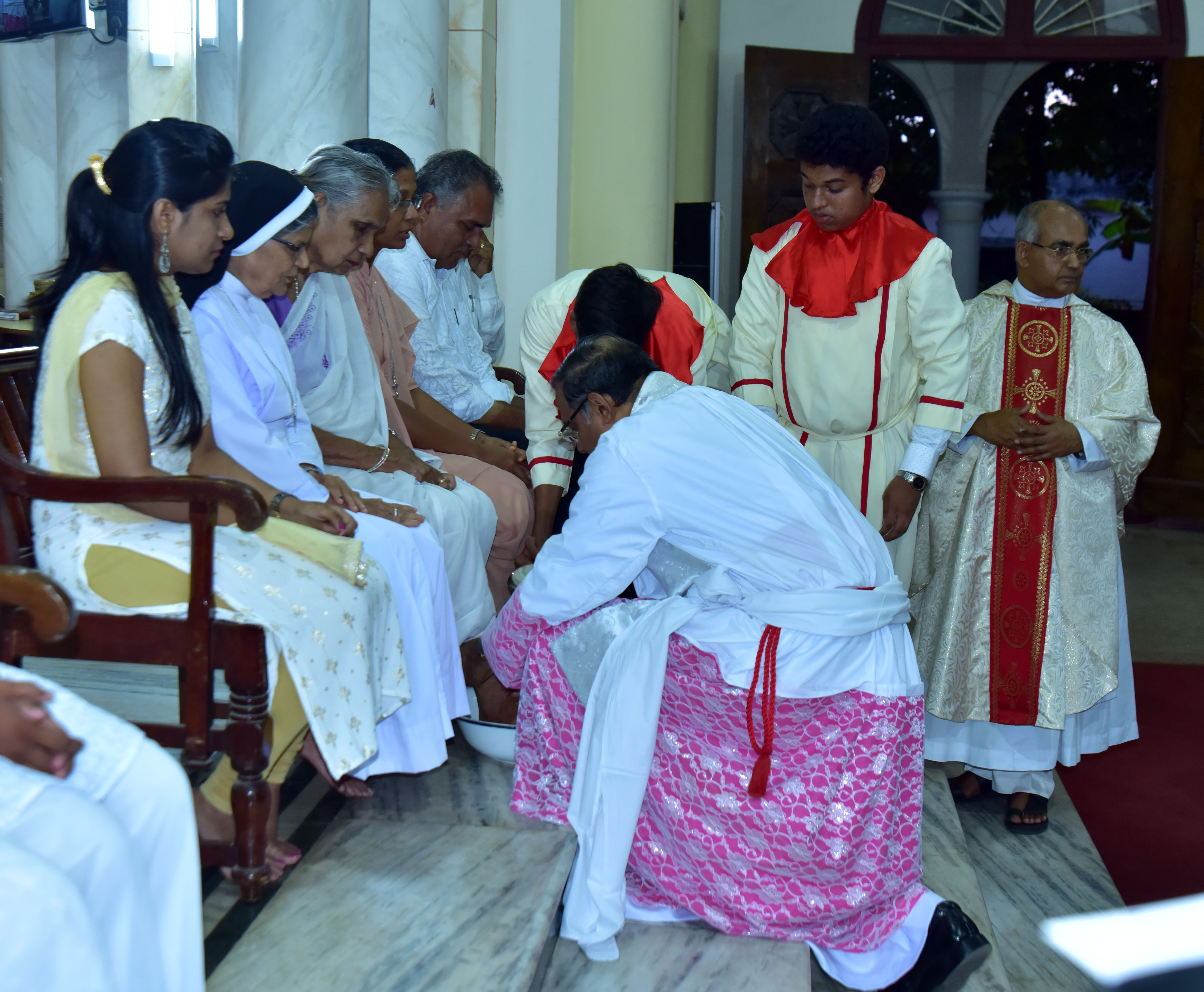 ಯೇಸು ಕ್ರಿಸ್ತರು ತಮ್ಮ ಕೊನೆಯ ಭೋಜನದ ಸಂದರ್ಭದಲ್ಲಿ 12 ಮಂದಿ ಶಿಷ್ಯರ ಪಾದ ತೊಳೆದು ಸೇವೆಯ ಸಂಸ್ಕಾರವನ್ನು ಪ್ರತಿಪಾದಿಸಿದ್ದು, ಅದರ ಸಂಕೇತವಾಗಿ ಕೆಥೆಡ್ರಲ್ನಲ್ಲಿ ಬಿಷಪರು ಹಾಗೂ ಇತರ ಚರ್ಚ್ಗಳಲ್ಲಿ ಸ್ಧಳೀಯ ಧರ್ಮಗುರುಗಳು 12 ಜನ ಕ್ರೈಸ್ತರ ಪಾದಗಳನ್ನು ತೊಳೆದರು. ಇದರಲ್ಲಿ ಶೇ.50ರಷ್ಟು ಮಹಿಳೆಯರು (6 ಮಂದಿ) ಇದ್ದರು. ಜತೆಗೆ ಯುವಜನರಿಗೆ, ವಯಸ್ಕರಿಗೆ, ರೋಗಿಗಳಿಗೆ ಹಾಗೂ ಧಾರ್ಮಿಕ ವ್ಯಕ್ತಿಗಳಿಗೂ ಪ್ರಾತಿನಿಧ್ಯ ನೀಡಲಾಗಿತ್ತು.