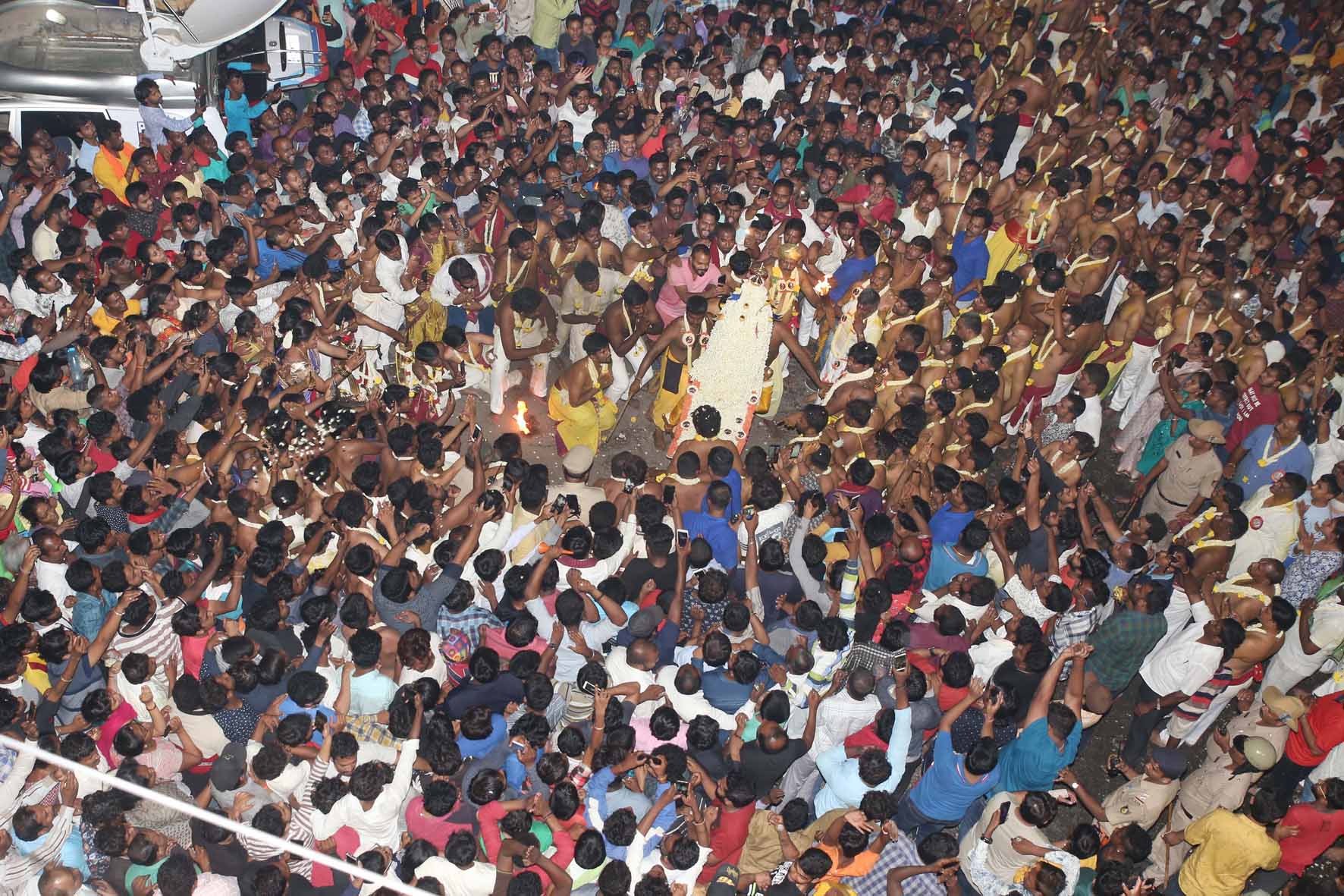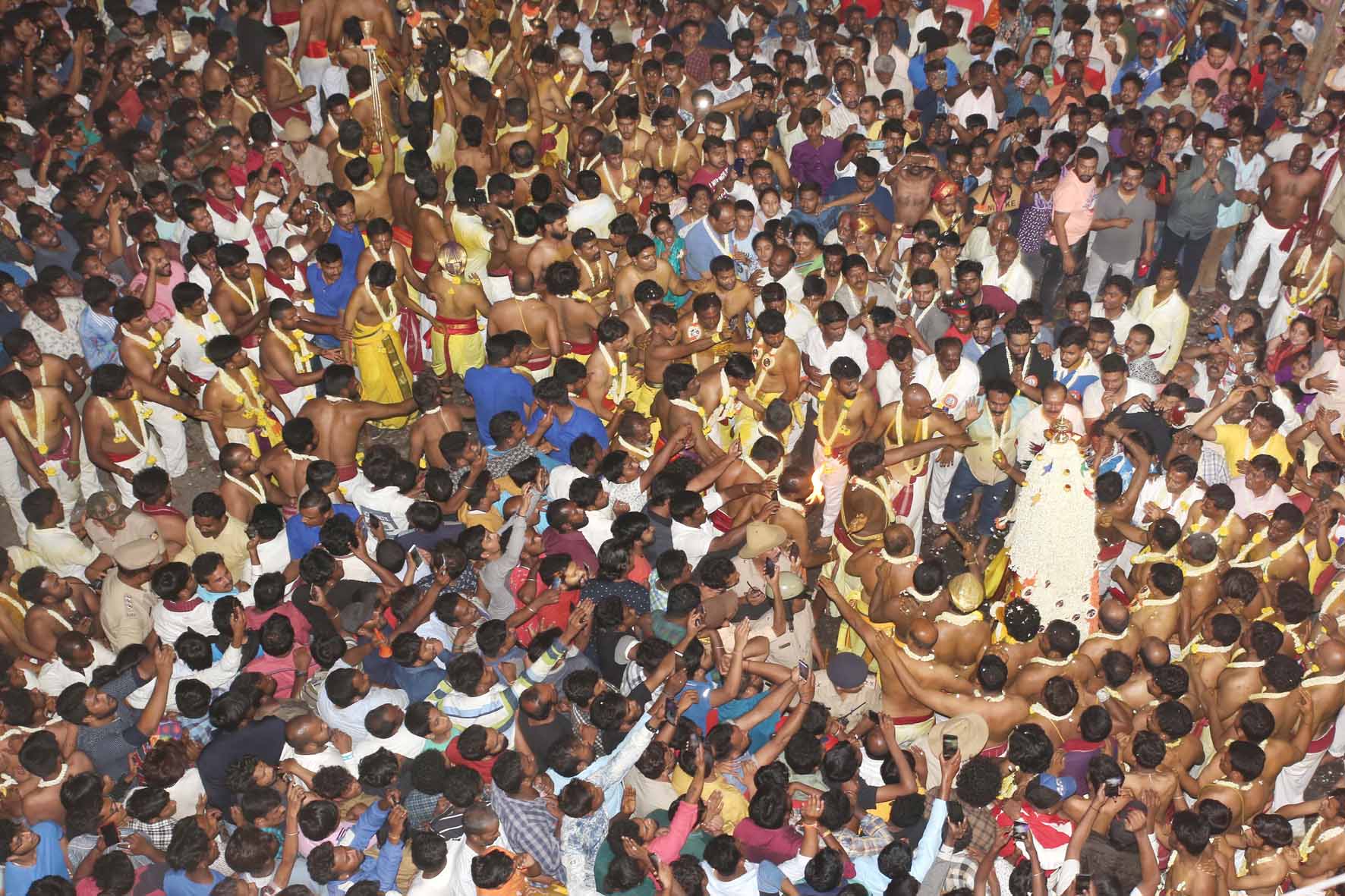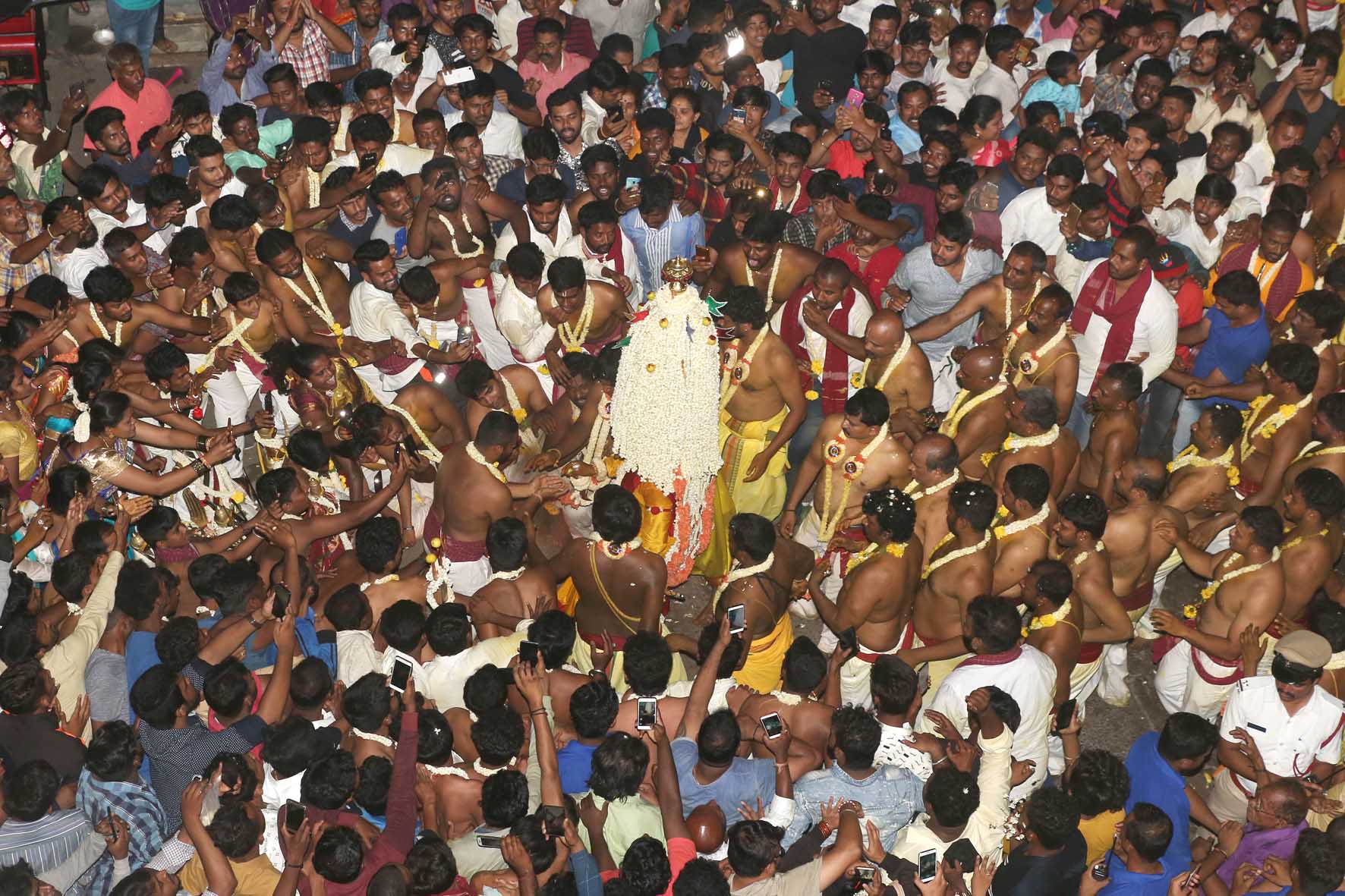 ಬೆಂಗಳೂರು, ಎ.20: ಪ್ರತಿ ವರ್ಷ ಚೈತ್ರ ಹುಣ್ಣಿಮೆಯ ದಿನದಂದು ನಡೆಯುವ ಬೆಂಗಳೂರು ಕರಗ ಮಹೋತ್ಸವ ಶನಿವಾರ ಅದ್ಧೂರಿಯಾಗಿ, ವೈಭವಯುತವಾಗಿ ನೆರವೇರಿದ್ದು, ರಾಜ್ಯದ ವಿವಿಧ ಕಡೆಗಳಿಂದ ಹಾಗೂ ಹೊರರಾಜ್ಯಗಳಿಂದ ಸಾವಿರಾರು ಸಂಖ್ಯೆಯಲ್ಲಿ ಆಗಮಿಸಿ ಕರಗ ಉತ್ಸವವನ್ನು ಕಣ್ತುಂಬಿಕೊಂಡರು.