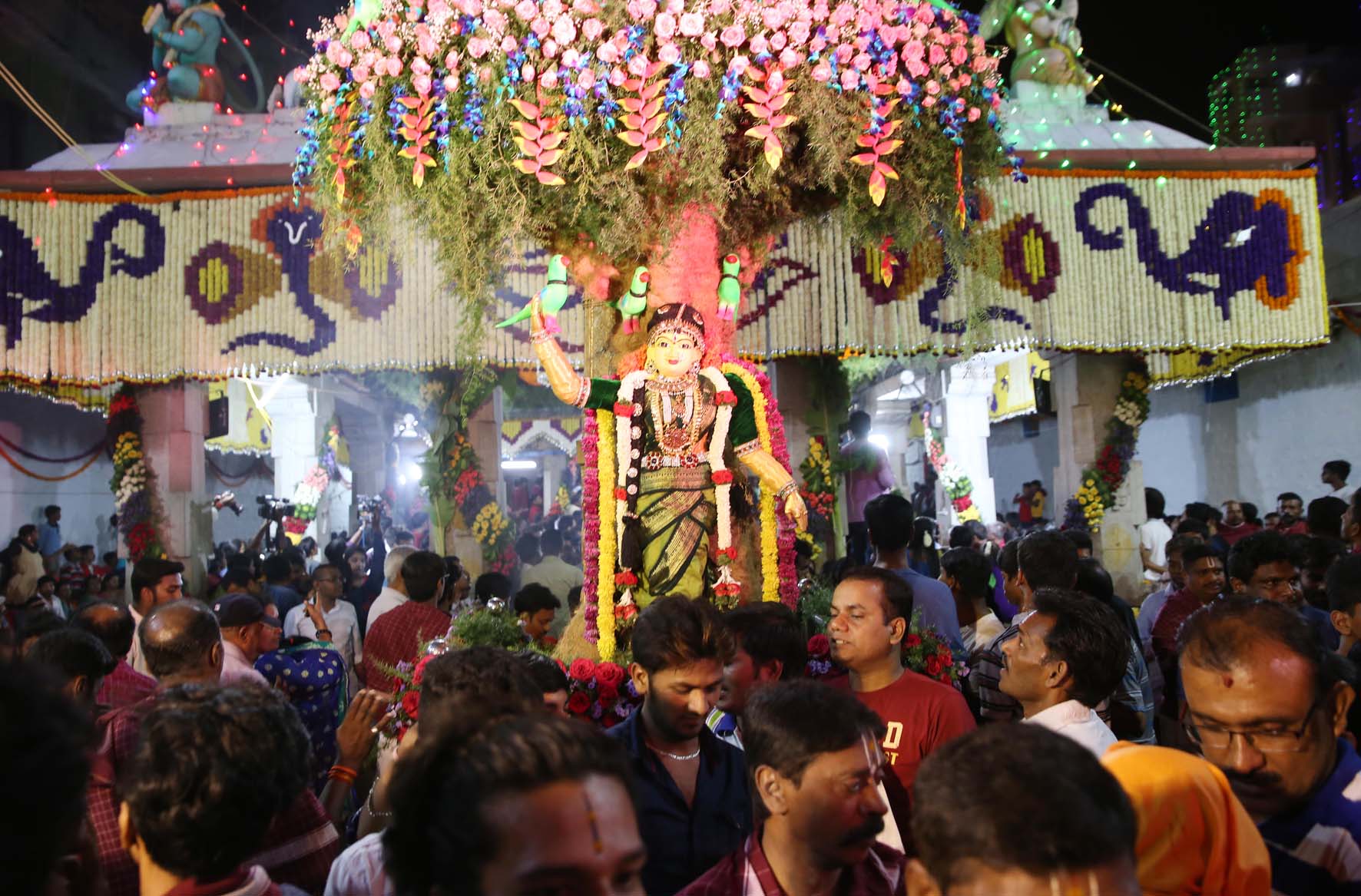 ಕರಗ ಹೊತ್ತಿದ್ದ ಮನುಗೆ ಹರಿಶಿಣ ಬಣ್ಣದ ಸೀರೆ ಉಡಿಸಿ, ಬಳೆ ತೊಡಿಸಿ ದ್ರೌಪದಿಯಂತೆ ಸಿಂಗಾರ ಮಾಡಲಾಗಿತ್ತು. ಕರಗಧಾರಿಯ ಸ್ವಾಗತಕ್ಕೆ ಮನೆಗಳ ಮುಂದೆ ರಂಗೋಲಿ ಬಿಡಿಸಿ ಬಣ್ಣಗಳನ್ನು ತುಂಬಿದ್ದು ಎಲ್ಲರ ಗಮನ ಸೆಳೆಯಿತು. ಅಲ್ಲದೆ ತಳಿರುತೋರಣಗಳಿಂದ ಅಲಂಕಾರ, ಸರ್ವಾಲಂಕಾರ ಭೂಷಿತರಾಗಿದ್ದ ಕರಗಧಾರಿ ಮನು ವೀರಕುಮಾರರೊಂದಿಗೆ ದೇವಸ್ಥಾನಕ್ಕೆ ಮೆರವಣಿಗೆಯಲ್ಲಿ ಬಂದು ಪೂಜೆ ಸಲ್ಲಿಸಿ ನಂತರ ಒಂದು ಕೈಯಲ್ಲಿ ಕತ್ತಿ, ಮತ್ತೊಂದು ಕೈಯಲ್ಲಿ ಮಂತ್ರ ದಂಡದೊಂದಿಗೆ ದೇವಾಲಯ ಗರ್ಭಗುಡಿಯಿಂದ ಹೊರಗೆ ಬರುತ್ತಿದ್ದಂತೆ ಜೈಕಾರ ಮೊಳಗಿತು.