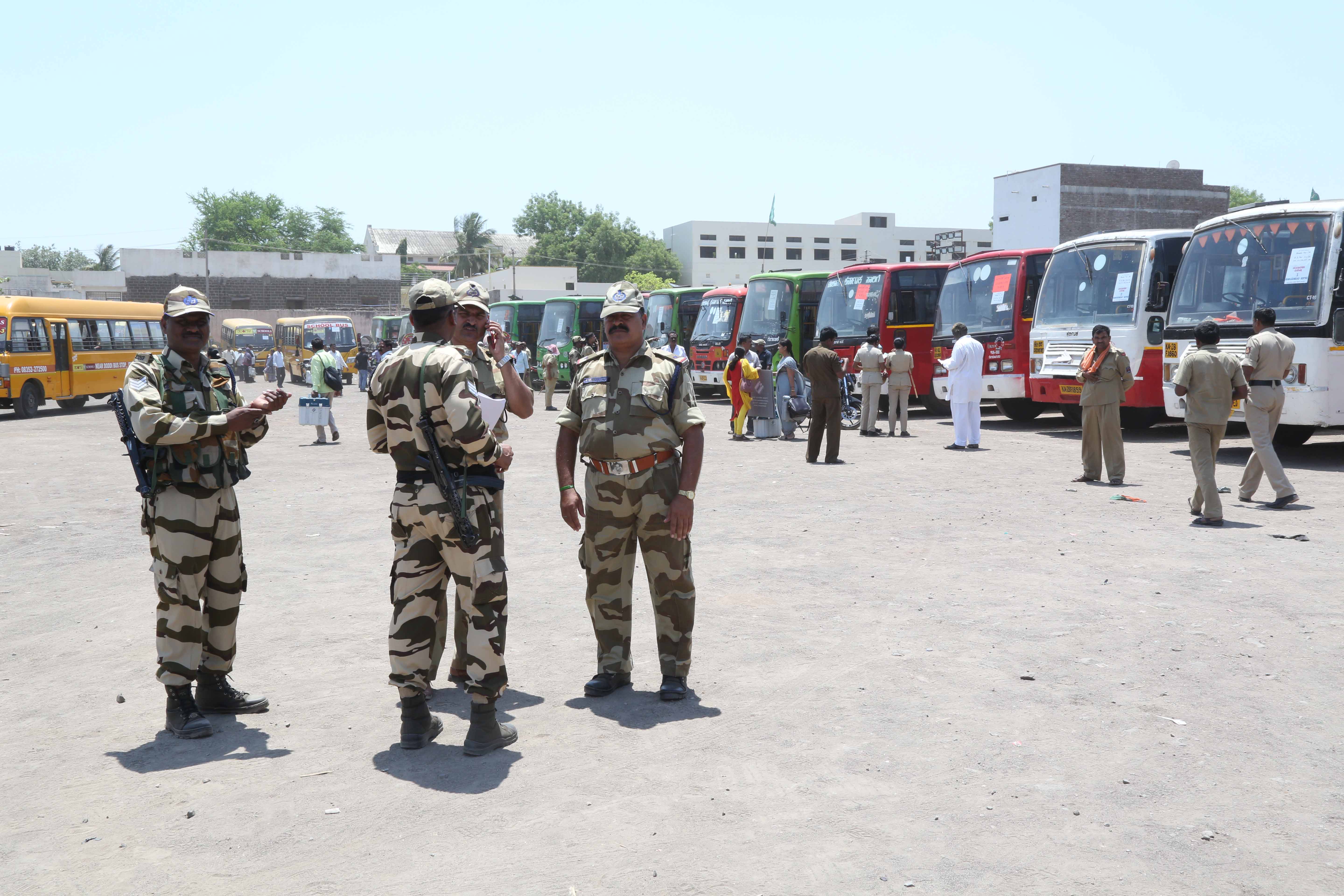 ದರಬಾರ ಹೈಸ್ಕೂಲ್ ಮೈದಾನ, ಸೈನಿಕ ಶಾಲೆಯಲ್ಲಿ ಚುನಾವಣಾ ಕರ್ತವ್ಯ ನಿರತ ಸಿಬ್ಬಂದಿಗಳಿಗೆ ಕರೆದುಕೊಂಡು ಹೋಗಲು ಕೆಎಸ್ಸಾರ್ಟಿಸಿ ಬಸ್ಗಳು ಸಾಲು ಸಾಲಾಗಿ ನಿಂತಿದ್ದವು, ಯಾವ ಕ್ಷೇತ್ರಕ್ಕೆ ಯಾವ ಬಸ್ ಹೋಗುತ್ತದೆ ಎಂಬ ಮಾಹಿತಿ ಕಲೆ ಹಾಕಿ ಸಿಬ್ಬಂದಿ ಬಸ್ ಹತ್ತಿ ಕರ್ತವ್ಯಕ್ಕೆ ತೆರಳುತ್ತಿರುವ ದೃಶ್ಯ ಸಾಮಾನ್ಯವಾಗಿತ್ತು.