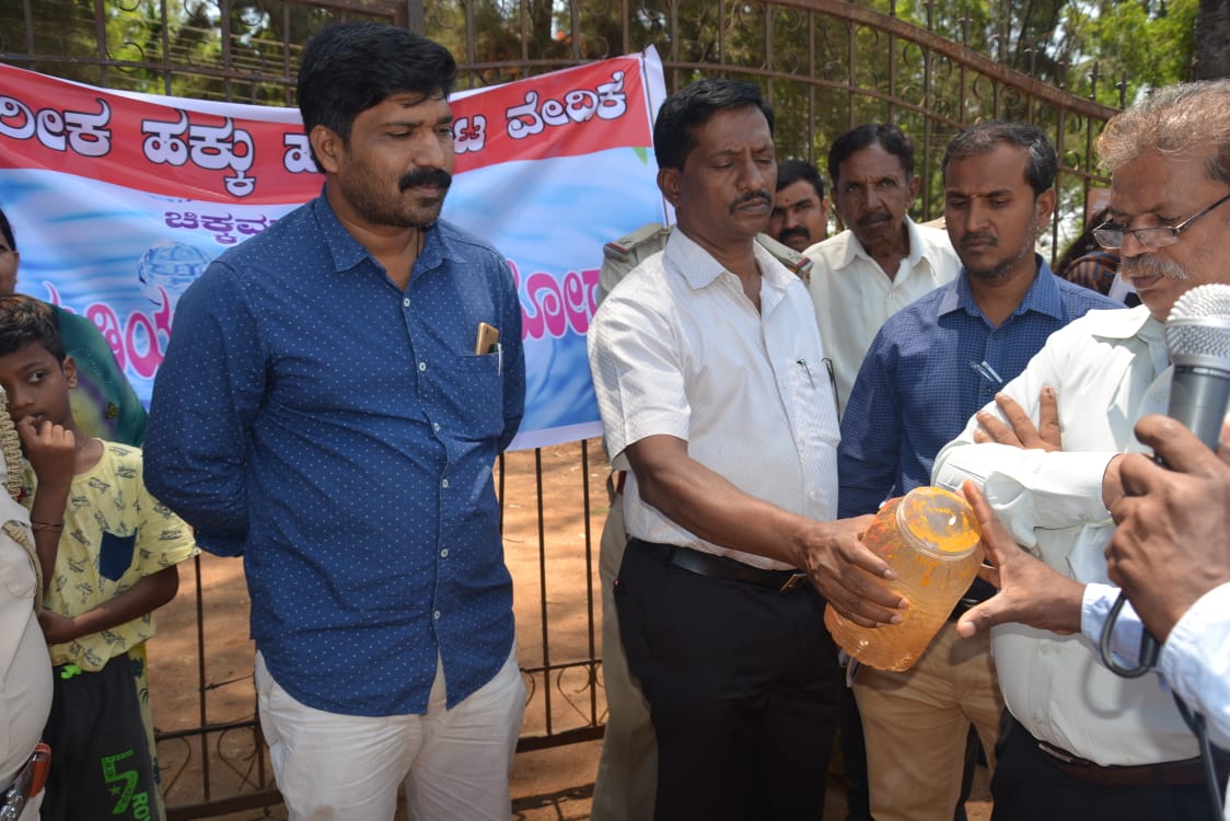 ನಗರಸಭೆ ಅಧಿಕಾರಿಗಳು, ಜಿಲ್ಲಾಧಿಕಾರಿ, ಸಿಇಒ, ಎಸ್ಪಿ, ಶಾಸಕರೆಲ್ಲರೂ ಪಿಲ್ಟರ್ ನೀರನ್ನು ಕುಡಿಯುತ್ತಿದ್ದಾರೆ. ಕಳೆದ 15 ಐದು ವರ್ಷಗಳ ನಗರಸಭೆ ಆಡಳಿತ ನಡೆಸಿದವರು ವಾಟರ್ ಕಂಪೆನಿಗಳನ್ನು ನಡೆಸುತ್ತಾ ಶುದ್ಧೀಕರಿಸಿದ ನೀರು ಕುಡಿಯುತ್ತಿದ್ದಾರೆ. ಸಾರ್ವಜನಿಕರು, ಬಡಜನರು ಮಾತ್ರ ನಗರಸಭೆ ಪೂರೈಸುವ ಹಸಿರು ಬಣ್ಣ ಕಲುಷಿತ ನೀರು ಕುಡಿಯುತ್ತಿದ್ದಾರೆ. ಇದನ್ನು ಪ್ರಶ್ನಿಸಿದರೆ ನಗರಸಭೆ ಕಮಿಷನರ್ ಇಲ್ಲದ ಸಬೂಬು ಹೇಳುತ್ತಾರೆ. ಆರೋಗ್ಯ ನಿರೀಕ್ಷಕರು ಜನರ ಕೈಗೆ ಸಿಗುತ್ತಿಲ್ಲ. ಶುದ್ಧೀಕರಿಸಿದ ನೀರನ್ನೇ ನಗರಕ್ಕೆ ಪೂರೈಕೆ ಮಾಡಬೇಕು ಹಾಗೂ ವಾಟರ್ ಬೆಡ್ಅನ್ನು ನವೀಕರಣ ಮಾಡಬೇಕು. ತಪ್ಪಿದಲ್ಲಿ ಹೋರಾಟ ಮುಂದುವರಿಯಲಿದೆ.