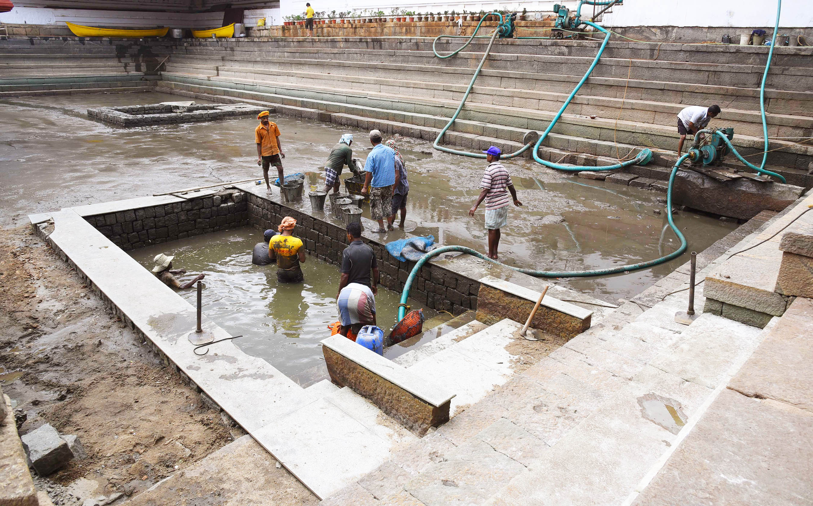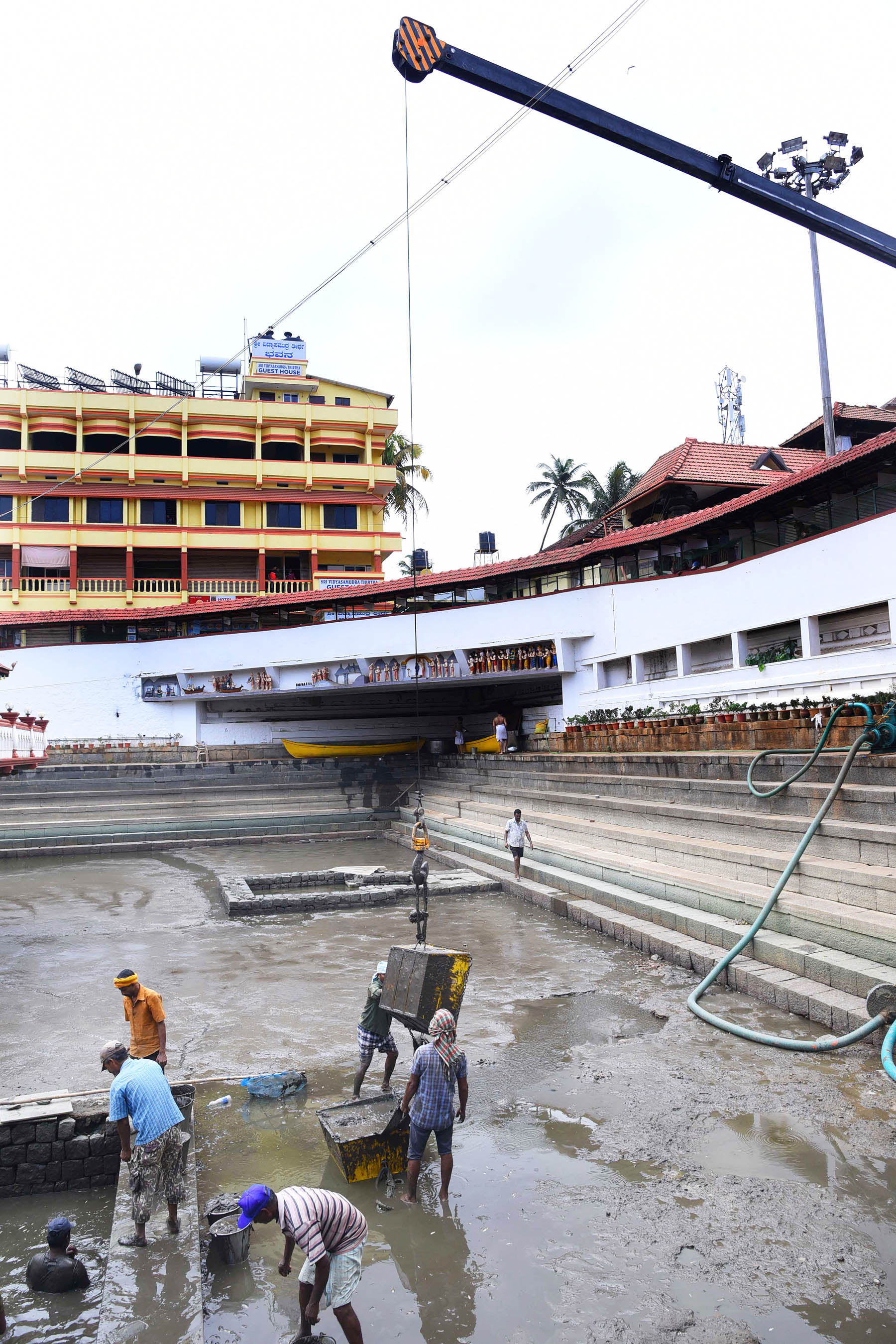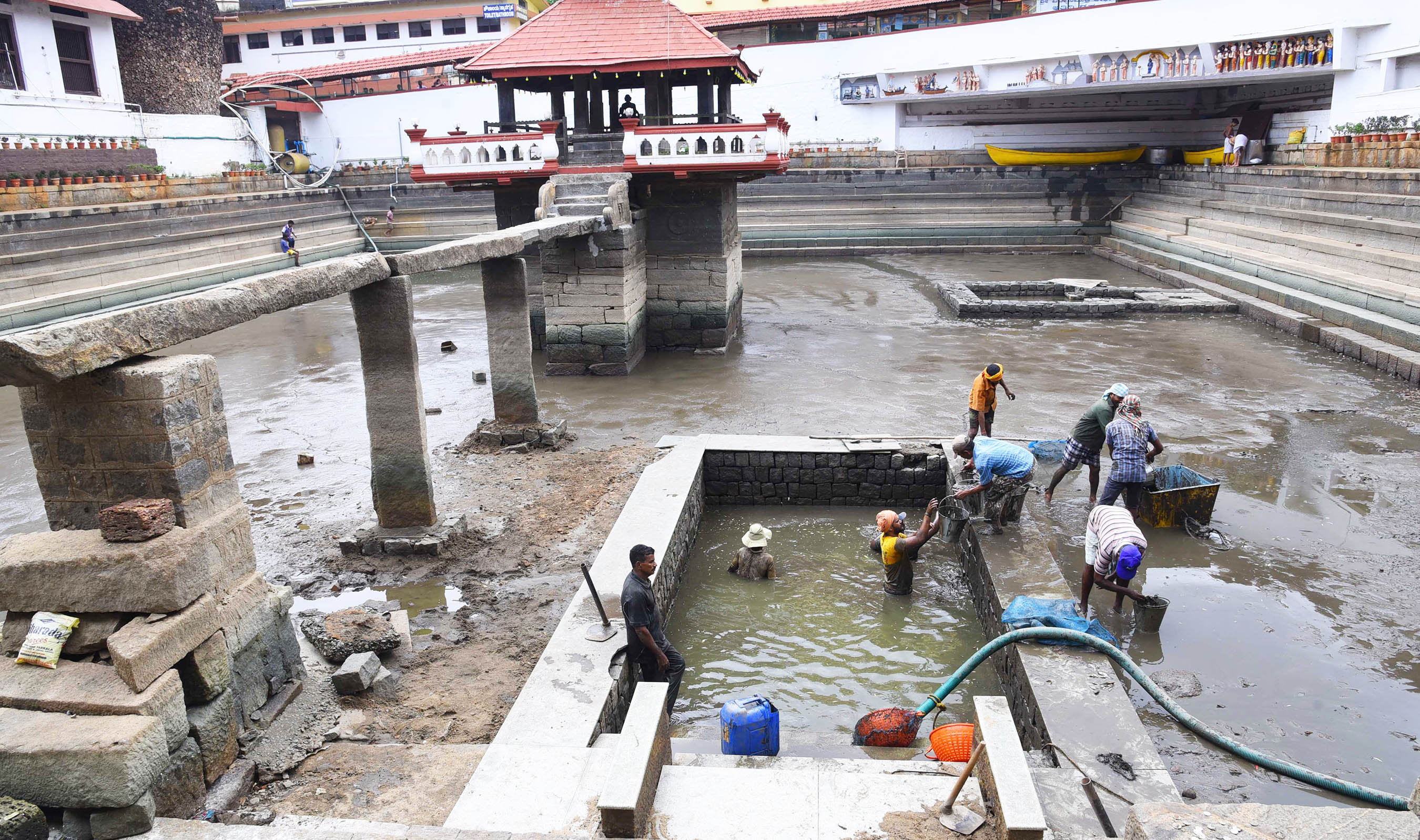 ಶ್ರೀಗಳ ಹಾಗೂ ಇತರರ ದೈನಂದಿನ ಸ್ನಾನಕ್ಕಾಗಿ ಮೊದಲು ಸಣ್ಣ ಸರೋವರದ ಹೂಳೆತ್ತಿ ಶುದ್ಧೀಕರಿಸಲಾಗುತ್ತದೆ. ಇದರಲ್ಲಿ 5 ಅಡಿಯಷ್ಟು ಹೂಳು ತುಂಬಿದೆ ಎಂದು ಹೂಳೆತ್ತುವ ಕೆಲಸ ಮಾಡುತ್ತಿರು ಕಾರ್ಮಿಕರು ಅಭಿಪ್ರಾಯ ಪಟ್ಟಿದ್ದಾರೆ.