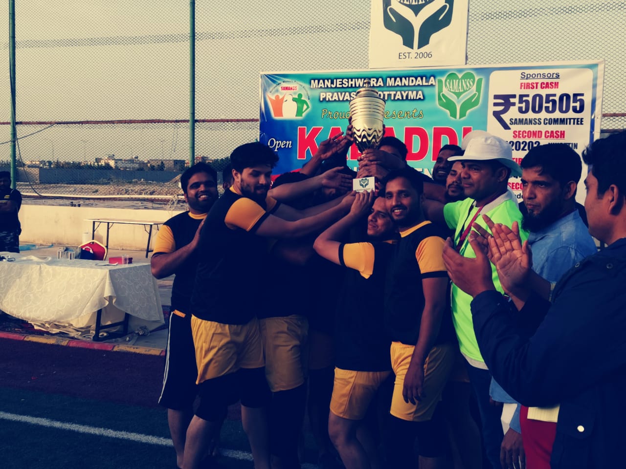 ಜುಬೈಲ್: ಮಂಜೇಶ್ವರ ಪ್ರವಾಸಿ ಸಂಘಟನೆ ದಮಾಮ್ ನಲ್ಲಿ ಆಯೋಜಿಸಿದ್ದ ಹೊನಲು ಬೆಳಕಿನ ಕಬಡ್ಡಿ ಪಂದ್ಯಾಕೂಟದಲ್ಲಿ ಕರಾವಳಿ ಫ್ರೆಂಡ್ಸ್ ರಿಯಾದ್ ತಂಡ ಪ್ರಥಮ ಸ್ಥಾನ ಹಾಗು 50 ಸಾವಿರ ರೂ. ನಗದು ಬಹುಮಾನ ಪಡೆದುಕೊಂಡಿದೆ.