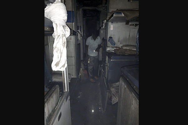 ಧಗಧಗನೆ ಉರಿದ ಬೋಗಿ: ಸಿಬ್ಬಂದಿಗಳ ಸೂಚನೆಯಂತೆ ರೈಲನ್ನು ಕೂಡಲೇ ನಿಲ್ಲಿಸಲಾಯಿತು. ಇತರ ರೈಲುಗಳ ಸಂಚಾರಕ್ಕೆ ತೊಂದರೆ ಉಂಟಾಗಬಹುದೆಂಬ ಕಾರಣದಿಂದ ರೈಲನ್ನು ಒಂದು ಕಿ.ಮೀ. ಹಿಂದೆ ಇರುವ ಬಿಜೂರು ರೈಲ್ವೆ ನಿಲ್ದಾಣಕ್ಕೆ ರಿವರ್ಸ್ ಮೂಲಕ ತರಲಾಯಿತು. ಕೂಡಲೇ ಬೋಗಿಯಲ್ಲಿದ್ದವರನ್ನು ಕೆಳಗೆ ಇಳಿಸಿ ಬೇರೆ ಬೋಗಿಗಳಿಗೆ ವರ್ಗಾಯಿಸಲಾಯಿತು.