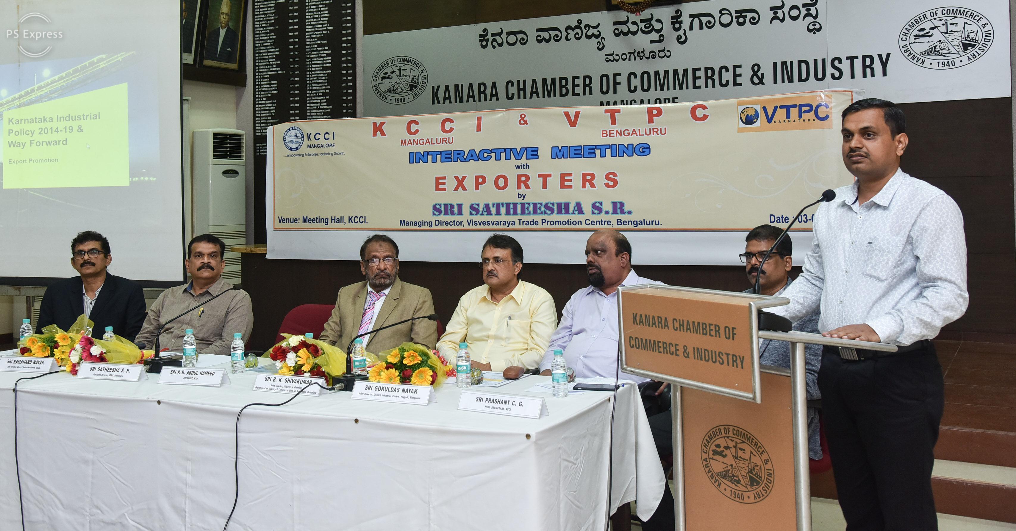 ನಗರದ ಕೆನರಾ ವಾಣಿಜ್ಯ ಮತ್ತು ಕೈಗಾರಿಕಾ ಮಂಡಳಿ (ಕೆಸಿಸಿಐ)ಯ ಸಭಾಂಗಣದಲ್ಲಿ ಶುಕ್ರವಾರ ನಡೆದ ‘ರಫ್ತುದಾರರೊಂದಿಗೆ ಸಂವಾದ’ ಕಾರ್ಯಕ್ರಮದಲ್ಲಿ ಅವರು ಮಾತನಾಡಿದರು.