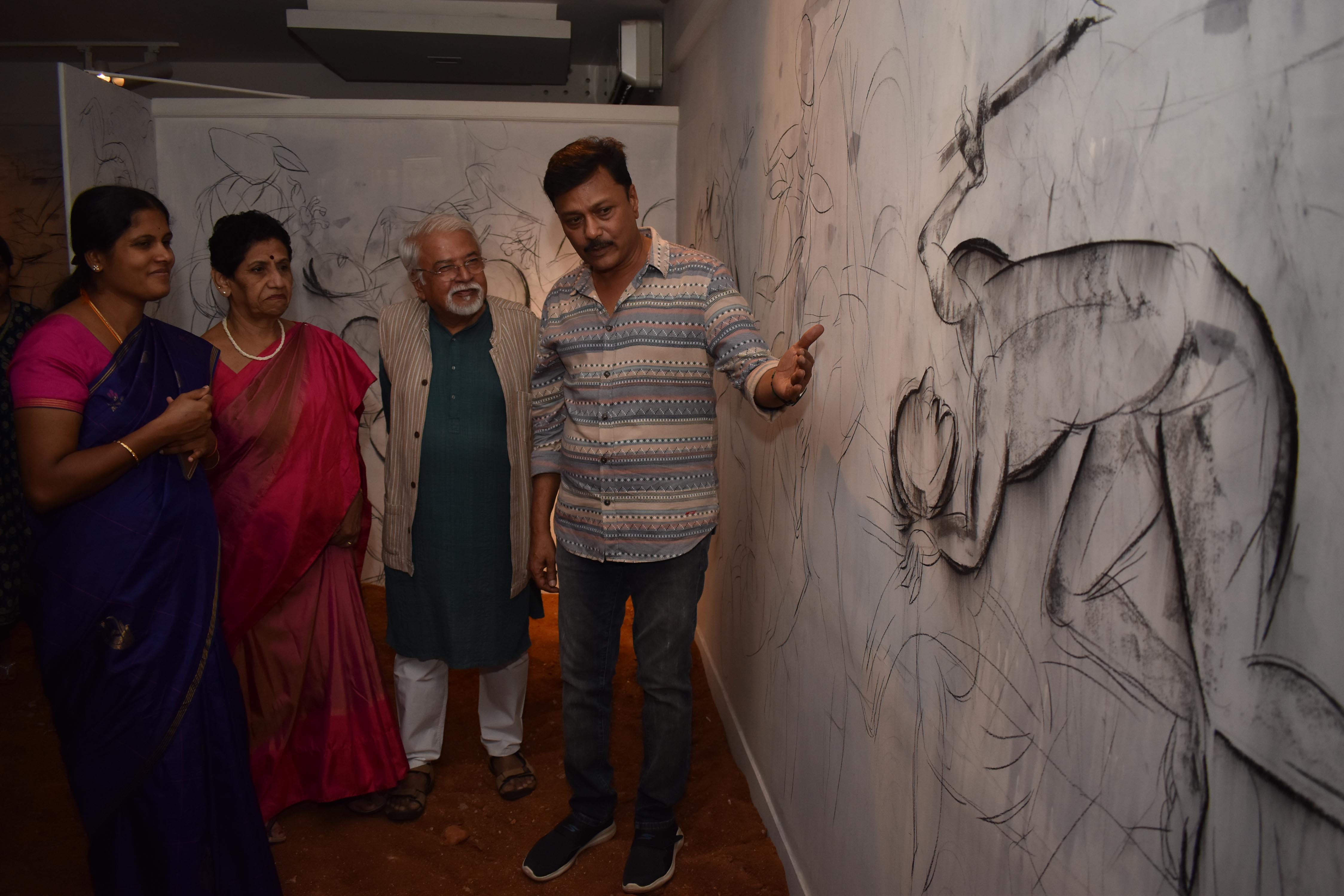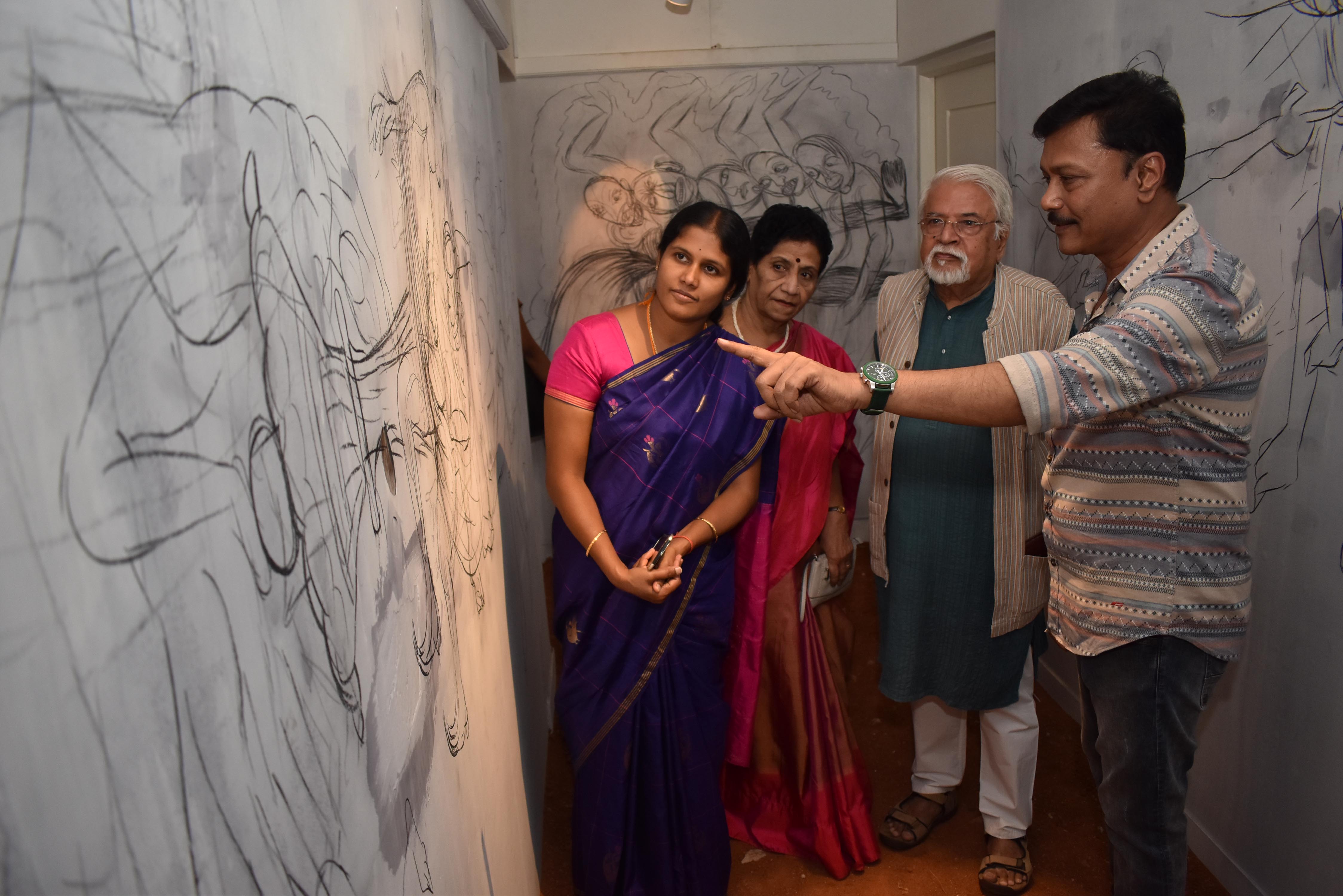 ಕಲಾವಿದ ಕೆ.ಎಸ್.ಅಪ್ಪಾಜಯ್ಯ ಮಾತನಾಡಿ, ಗೋಡೆಯ ಮೇಲೆ ನೇರವಾಗಿ ಬರೆಯಲಾಗಿರುವ ಸ್ತ್ರೀತನವ ಕುರಿತಾದ ಚಾರ್ಕೋಲ್ ರೇಖಾಚಿತ್ರಗಳು, ಗ್ಯಾಲರಿಯ ನೆಲದ ಮೇಲೆ ಸಂಯೋಜಿಸಲಾದ ಮಣ್ಣಿನ ವಿನ್ಯಾಸ, ರೆಡಿಮೇಡ್ ಗುಣದ ಸೀರೆಬಟ್ಟೆ, ಪುರುಷ ಜನನಾಂಗದ ಪುನರಾವೃತ್ತ ಶಿಲ್ಪಗಳು, ಇವೆಲ್ಲವೂ ಜೆಂಡರ್- ರಾಜಕಾರಣ ಕುರಿತಾದ ವ್ಯಕ್ತಿಗತ ಏಕಚಿತ್ರ ನಿರ್ಮಿತಿಯಾಗಿದೆ ಎಂದರು. ಈ ಕಲಾಪ್ರದರ್ಶನ ಮೇ 12 ರಿಂದ ಮೇ 15 ರವರೆಗೆ ನಡೆಯಲಿದೆ.