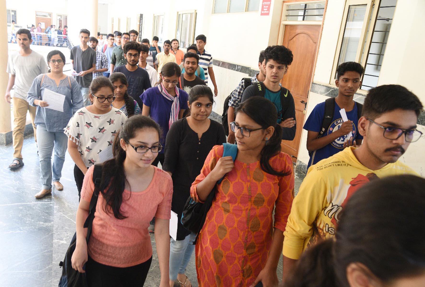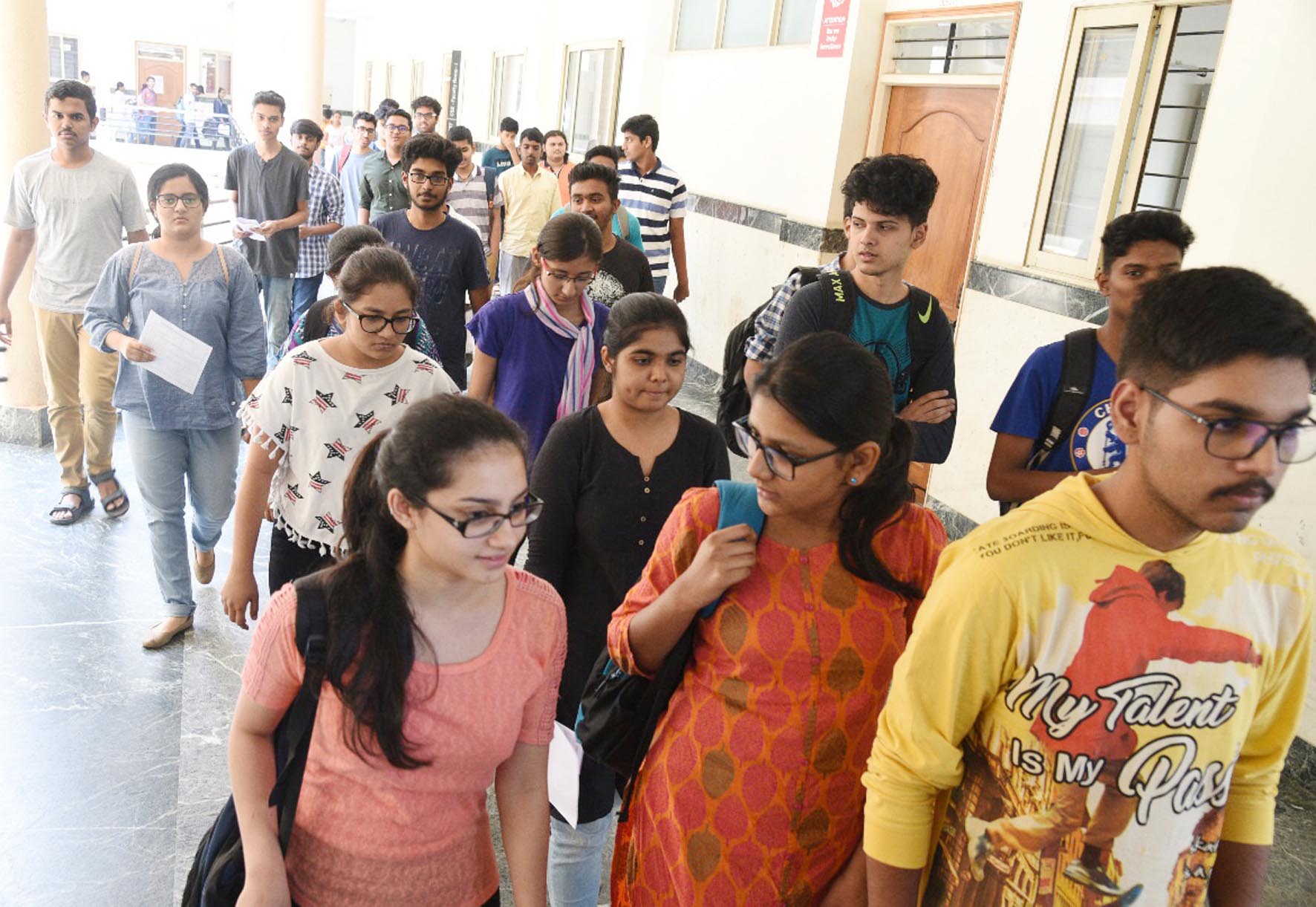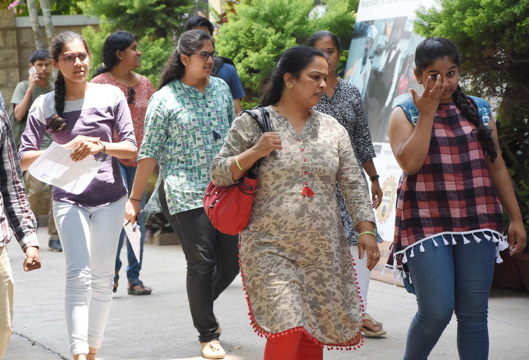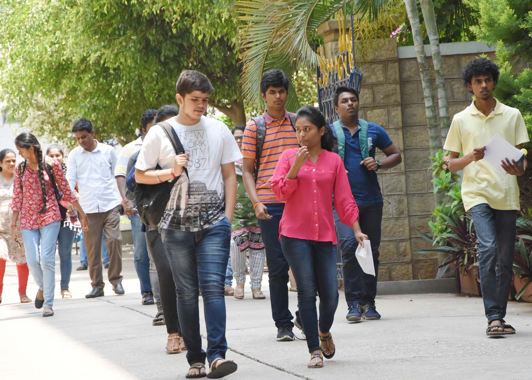 ಬೆಂಗಳೂರಿನ ಕೆಎಲ್ಇ ಕಾಲೇಜ್ ನಲ್ಲಿ ಕಾಮೆಡ್-ಕೆ ಪರೀಕ್ಷೆ ಬರೆದು ಹೊರಬರುತ್ತಿರುವ ವಿದ್ಯಾರ್ಥಿಗಳು