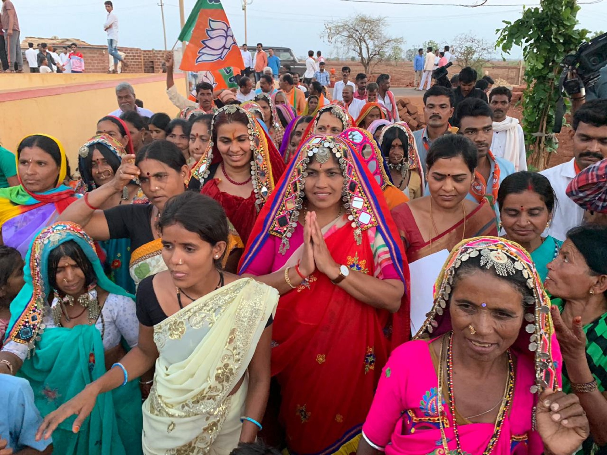 ಕಲಬುರಗಿ, ಮೇ 12: ಚಿಂಚೋಳಿ ಕ್ಷೇತ್ರದ ಉಪ ಚುನಾವಣೆ ಹಿನ್ನೆಲೆಯಲ್ಲಿ ಬಿಜೆಪಿ ಅಭ್ಯರ್ಥಿ ಅವಿನಾಶ್ ಜಾಧವ್ ಪರ ಎರಡು ದಿನಗಳಿಂದ ಪ್ರಚಾರ ಕೈಗೊಂಡಿರುವ ಸಂಸದೆ ಶೋಭಾ ಕರಂದ್ಲಾಜೆ ಲಂಬಾಣಿ ಮಹಿಳೆಯರಂತೆ ಉಡುಪು ಧರಿಸಿ ಕ್ಷೇತ್ರದಲ್ಲಿ ಪ್ರಚಾರ ನಡೆಸಿದರು.