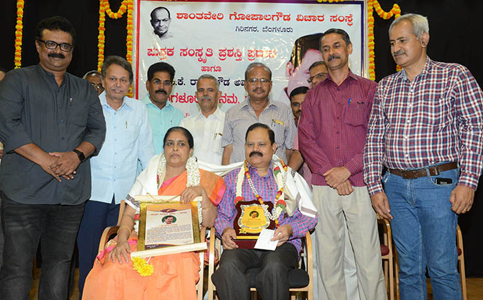 ಸಂಸ್ಕೃತಿ ಚಿಂತಕ ಡಾ. ಬರಗೂರು ರಾಮಚಂದ್ರಪ್ಪ ಅವರು ಅಂಕಿತ ಪುಸ್ತಕ ಪ್ರಕಾಶಕ ಪ್ರಕಾಶ್ ಕಂಬತ್ತಳ್ಳಿ ದಂಪತಿಗೆ ಪುಸ್ತಕ ಸಂಸ್ಕೃತಿ ಪ್ರಶಸ್ತಿ ಪ್ರದಾನ ಮಾಡಿ ಗೌರವಿಸಿದರು. ಜಾನಪದ ವಿದ್ವಾಂಸ ಡಾ.ಮೀರಾಸಾಬಿಹಳ್ಳಿ ಶಿವಣ್ಣ, ಐಸಿರಿ ಪ್ರಕಾಶನ ಸಂಸ್ಥೆಯ ಡಾ.ಮಂಜುನಾಥ ಪಾಳ್ಯ ಹಾಗೂ ಇತರರು ಇದ್ದರು.