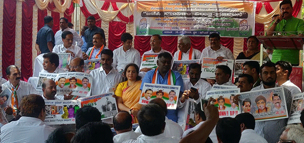 ಕೆಪಿಸಿಸಿ ಅಧ್ಯಕ್ಷ ದಿನೇಶ್ ಗುಂಡೂರಾವ್ ನೇತೃತ್ವದಲ್ಲಿ ನಗರದ ಮೌರ್ಯ ಸರ್ಕಲ್ ಬಳಿ ನಡೆದ ಪ್ರತಿಭಟನೆಯಲ್ಲಿ ಬೇಳೂರು ಗೋಪಾಲಕೃಷ್ಣ, ವಿಧಾನ ಪರಿಷತ್ ಸದಸ್ಯ ರಿಝ್ವನ್ ಅರ್ಷದ್ ಮೊದಲಾದವರು ಮಾತನಾಡಿ ಬಿಜೆಪಿ ನಾಯಕರ ಹೇಳಿಕೆಯನ್ನು ಖಂಡಿಸಿದರು.