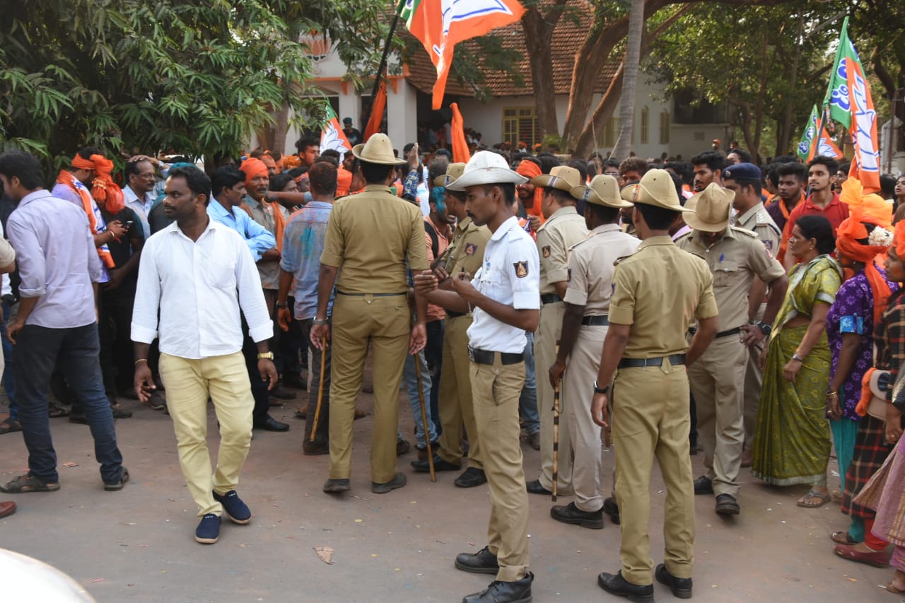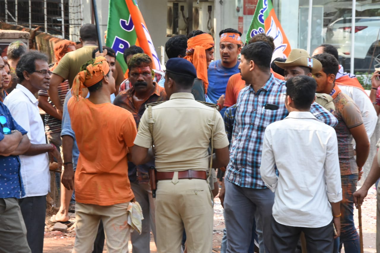ವಾಹನವೊಂದರಲ್ಲಿ ಕಚೇರಿಯ ಹೊರಭಾಗ ಬಾವುಟ ಪ್ರದರ್ಶಿಸಿ ಬಿಜೆಪಿ ಕಾರ್ಯಕರ್ತರು ಉದ್ಘೋಷ ಕೂಗಲೆತ್ನಿಸಿದರು. ಈ ವೇಳೆ ಮಧ್ಯ ಪ್ರವೇಶಿಸಿದ ಪೊಲೀಸರು ವಾತಾವರಣ ತಿಳಿಗೊಳಿಸಿದರು.