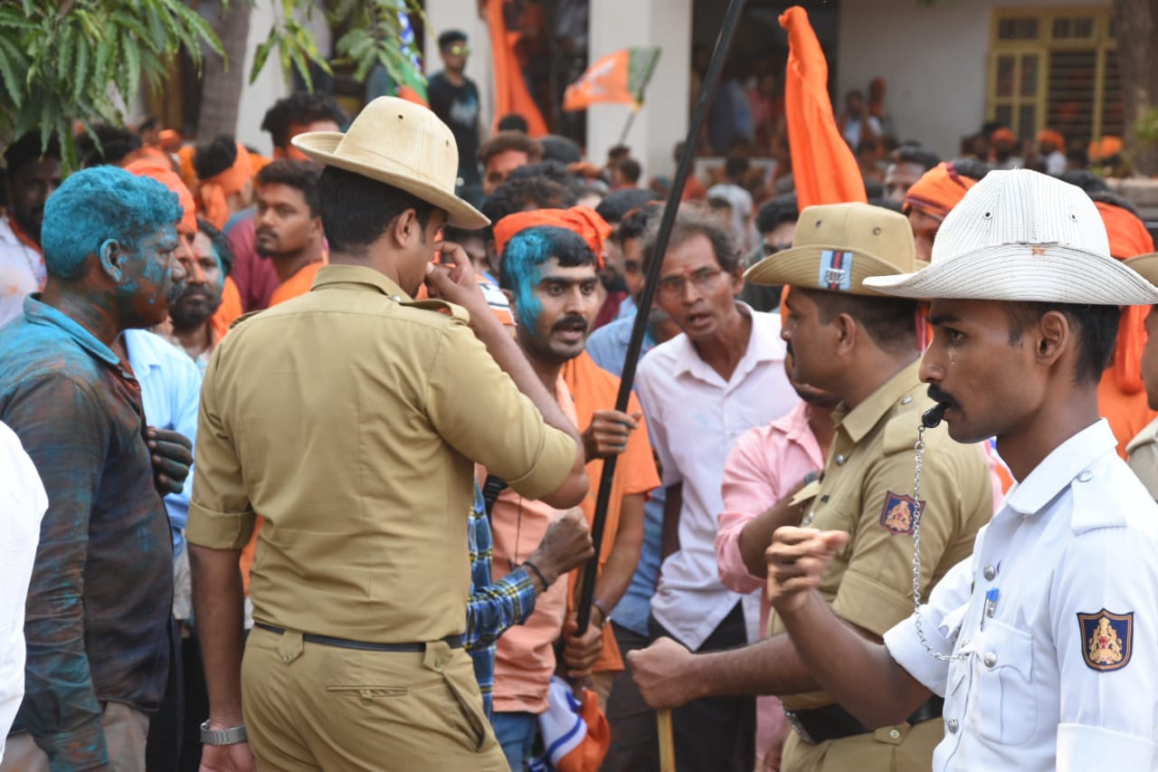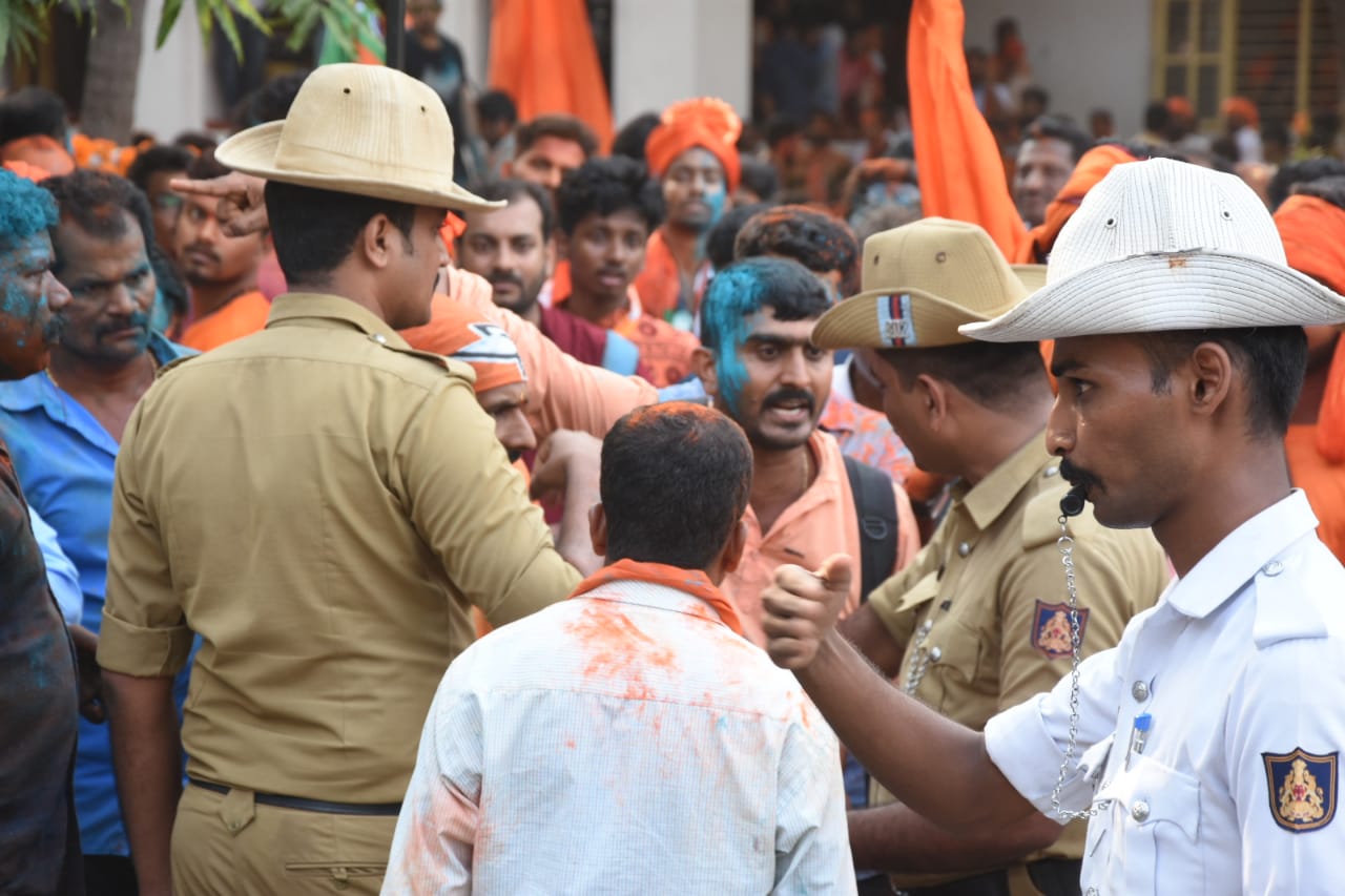 "ಹಿಂದೂಗಳಿಗೆ ಮಾತ್ರ ರಸ್ತೆಯಲ್ಲಿ ಉದ್ಘೋಷ ಕೂಗಲು ನೀವು ಬಿಡಲ್ಲ, ಪಂಪ್ ವೆಲ್ ಮುಂತಾದೆಡೆ ಮುಸ್ಲಿಮರು ಗಂಟೆಗಳ ಕಾಲ ಸಂಚಾರಕ್ಕೆ ಅಡಚಣೆ ಮಾಡಿದರೂ ಸುಮ್ಮನಿರುತ್ತೀರಿ' ಎಂದು ಬಿಜೆಪಿ ಕಾರ್ಯಕರ್ತರು ಪೊಲೀಸರತ್ತ ಮುಗಿಬಿದ್ದರು. ಬಳಿಕ ಪೊಲೀಸರು ಸ್ಥಳದಿಂದ ವಾಹನ ಹಾಗೂ ಕಾರ್ಯಕರ್ತರನ್ನು ತೆರವುಗೊಳಿಸಿದರು.