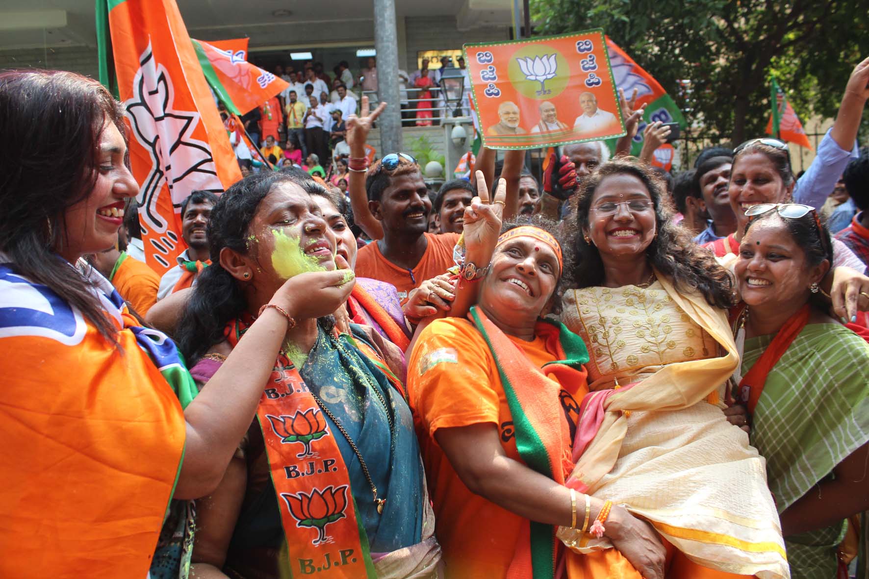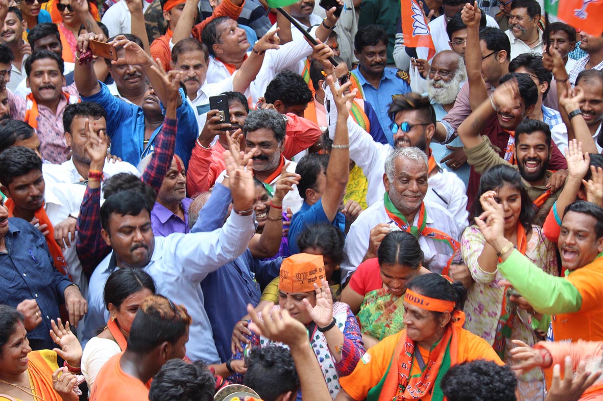 ಹಾವೇರಿ-ಗದಗ ಲೋಕಸಭಾ ಕ್ಷೇತ್ರದಲ್ಲಿ ಬಿಜೆಪಿ ಅಭ್ಯರ್ಥಿ ಶಿವಕುಮಾರ್ ಉದಾಸಿ ಭರ್ಜರಿ ಗೆಲುವು ಸಾಧಿಸುತ್ತಿದ್ದಂತೆಯೇ ಬಿಜೆಪಿ ಕಾರ್ಯಕರ್ತರು ಪ್ರಧಾನಿ ಮೋದಿ ಹಾಗೂ ಬಿಎಸ್ವೈ ಎಂದು ಘೋಷಣೆ ಕೂಗಿ ಸಂಭ್ರಮಿಸಿದರು. ಚಿಕ್ಕೋಡಿಯಲ್ಲಿ ಬಿಜೆಪಿ ಅಭ್ಯರ್ಥಿ ಅಣ್ಣಸಾಹೇಬ ಜೊಲ್ಲೆಗೆ ಭಾರೀ ಮುನ್ನಡೆಯಾಗಿದೆ. ಈ ಹಿನ್ನೆಲೆಯಲ್ಲಿ ಬಿಜೆಪಿ ಕಾರ್ಯಕರ್ತರು ಗುಲಾಲು(ಬಣ್ಣದ ಪುಡಿ) ಎರಚಿ, ಕುಣಿದು ಕುಪ್ಪಳಿಸಿ ಸಂಭ್ರಮಿಸಿದರು. ಚಿಕ್ಕೋಡಿ ಹಾಗೂ ಅಥಣಿ ಪಟ್ಟಣದಲ್ಲಿ ಸಂಭ್ರಮಾಚರಣೆ ನಡೆಸಲಾಯಿತು. ಚಿಕ್ಕೋಡಿ ಆರ್.ಡಿ ಕಾಲೇಜು ಎದುರು ಜಮಾವಣೆಗೊಂಡ ಕಾರ್ಯಕರ್ತರು ವಿಜಯೋತ್ಸವ ಆಚರಿಸಿದರು. ರಾಯಚೂರಿನಲ್ಲಿ ಬಿಜೆಪಿ ಭರ್ಜರಿ ಗೆಲುವು ಸಾಧಿಸಿದ ಹಿನ್ನೆಲೆಯಲ್ಲಿ ಬಿಜೆಪಿ ಕಾರ್ಯಕರ್ತರು ಸಂಭ್ರಮಾಚರಣೆ ನಡೆಸಿದರು. ಮಾನ್ವಿ ಪಟ್ಟಣದಲ್ಲಿ ಸಿಹಿ ಹಂಚಿ ಕಾರ್ಯಕರ್ತರು ಸಂಭ್ರಮಿಸಿದರು. ಪಟ್ಟಣದ ಪ್ರಮುಖ ವೃತ್ತಗಳಲ್ಲಿ ಪಟಾಕಿ ಸಿಡಿಸಿ, ಸಾರ್ವಜನಿಕರಿಗೆ, ವಾಹನ ಸವಾರರಿಗೆ ಸಿಹಿ ಹಂಚಿ ಸಂಭ್ರಮಿಸಿದರು.