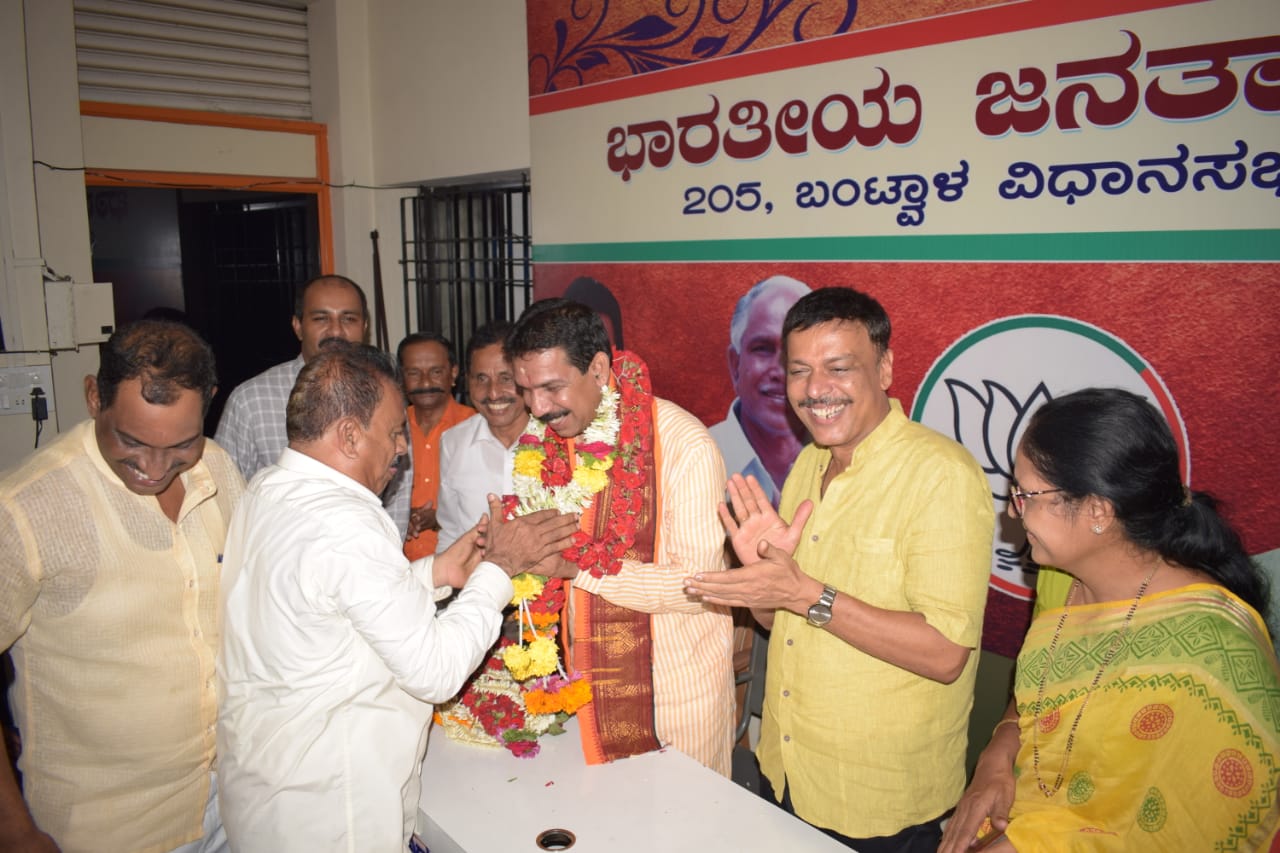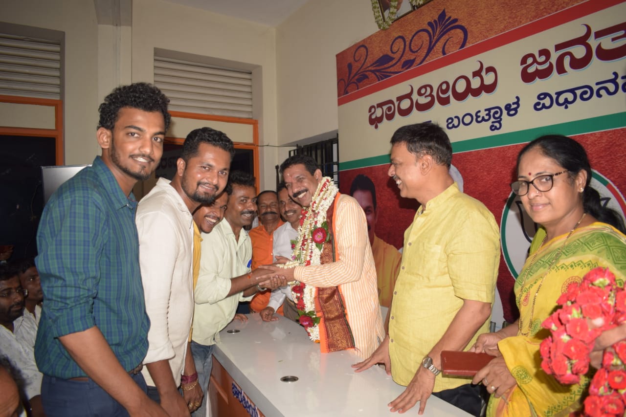 ಹ್ಯಾಟ್ರಿಕ್ ಗೆಲುವು ಸಾಧಿಸಿದ ಬಳಿಕ ಬಿ.ಸಿ.ರೋಡಿನಲ್ಲಿರುವ ಬಿಜೆಪಿ ಕಚೇರಿಗೆ ಶುಕ್ರವಾರ ರಾತ್ರಿ ಭೇಟಿ ನೀಡಿ ಪಕ್ಷದ ಪ್ರಮುಖ ಕಾರ್ಯ ಕರ್ತರನ್ನುದ್ದೇಶಿಸಿ ಮಾತನಾಡಿದರು.