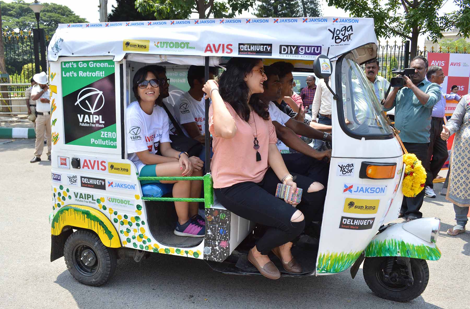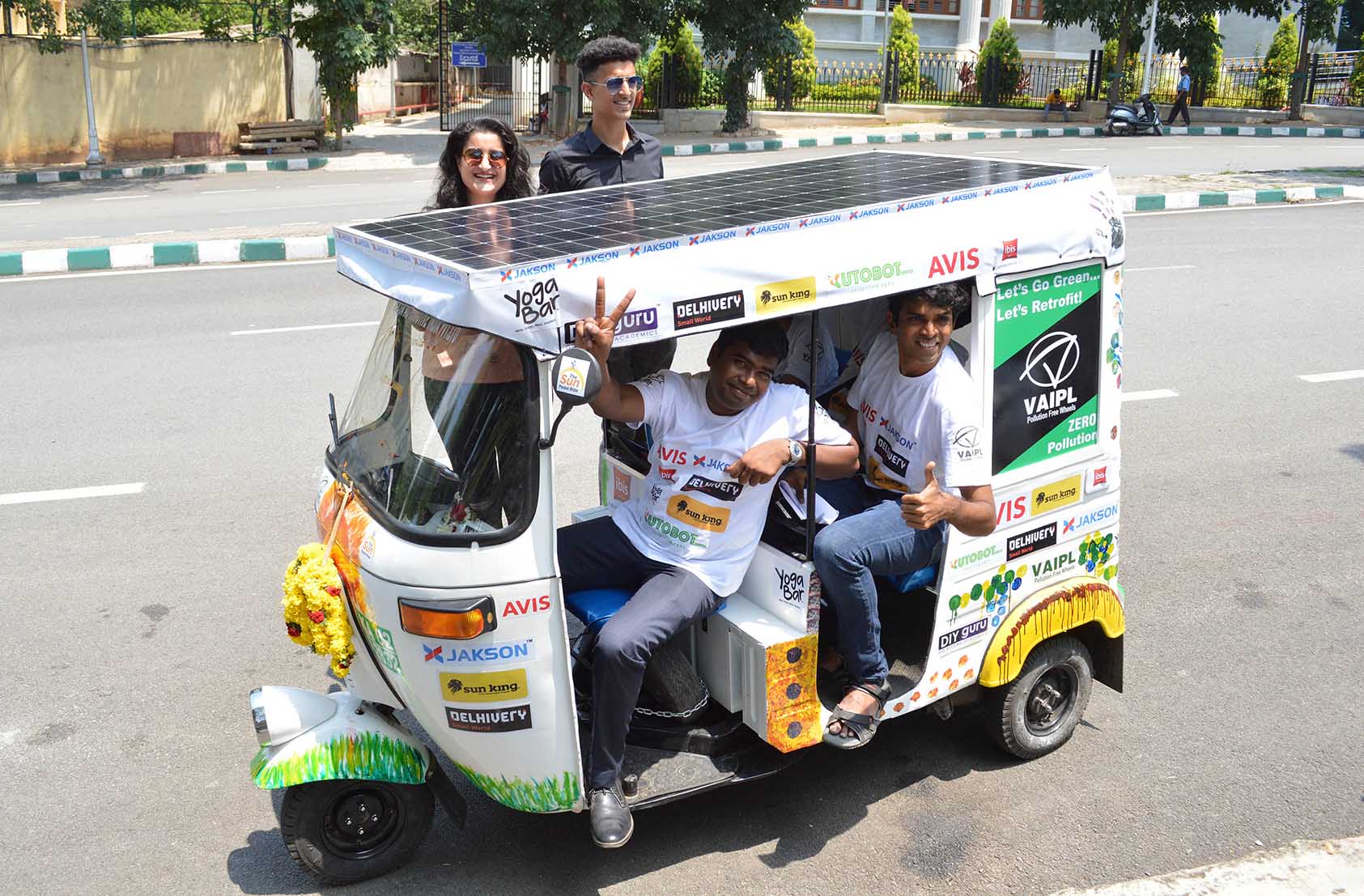 ಬೆಂಗಳೂರು: ಸೋಲಾರ್ ಆಧಾರಿತ ಎಲೆಕ್ಟ್ರಿಕ್ ರಿಕ್ಷಾದಲ್ಲಿ ಪ್ರವಾಸಕ್ಕೆ ಚಾಲನೆ