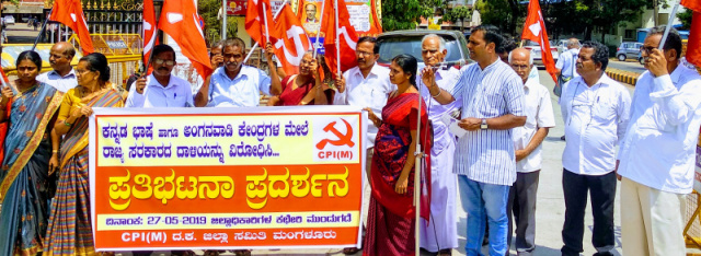 ರಾಜ್ಯದಲ್ಲಿ ಇಂಗ್ಲಿಷ್ ಮಾಧ್ಯಮ ಸರಕಾರಿ ಪ್ರಾಥಮಿಕ ಶಾಲೆ ಆರಂಭಿಸುವುದನ್ನು ವಿರೋಧಿಸಿ ಸಿಪಿಎಂ ದ.ಕ.ಜಿಲ್ಲಾ ಸಮಿತಿಯಿಂದ ಜಿಲ್ಲಾಧಿಕಾರಿ ಕಚೇರಿ ಎದುರು ಸೋಮವಾರ ನಡೆದ ಪ್ರತಿಭಟನಾ ಪ್ರದರ್ಶನ ನಡೆಯಿತು.