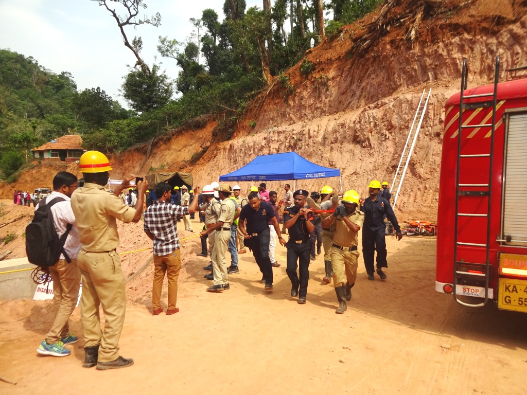 ಬೆಟ್ಟದಿಂದ ಕೆಳಗೆ ಹಗ್ಗ ಹಾಗೂ ಏಣಿ ಬಳಸಿ ನಾಗರಿಕರನ್ನು ರಕ್ಷಣೆ ಮಾಡುವುದು, ಬೆಟ್ಟದಿಂದ ಸಮತಟ್ಟು ಪ್ರದೇಶಕ್ಕೆ ಹಗ್ಗದ ಮೂಲಕ ಕಳುಹಿಸುವುದು, ರಕ್ಷಣೆ ಮಾಡಿದವರಿಗೆ ಸ್ಥಳದಲ್ಲಿಯೇ ಪ್ರಥಮ ಚಿಕಿತ್ಸೆ ನೀಡಿ ಆಸ್ಪತ್ರೆಗೆ ಸಾಗಿಸುವುದು. ಚಿಕಿತ್ಸೆ ನೀಡಿದ ನಂತರ ಪರಿಹಾರ ಕೇಂದ್ರಕ್ಕೆ ಸ್ಥಳಾಂತರ ಮಾಡುವುದು. ಹೀಗೆ ನಾನಾ ರೀತಿಯ ರಕ್ಷಣಾ ಕಾರ್ಯಗಳ ಪ್ರಾತ್ಯಕ್ಷಿಕೆ ಜರುಗಿತು.