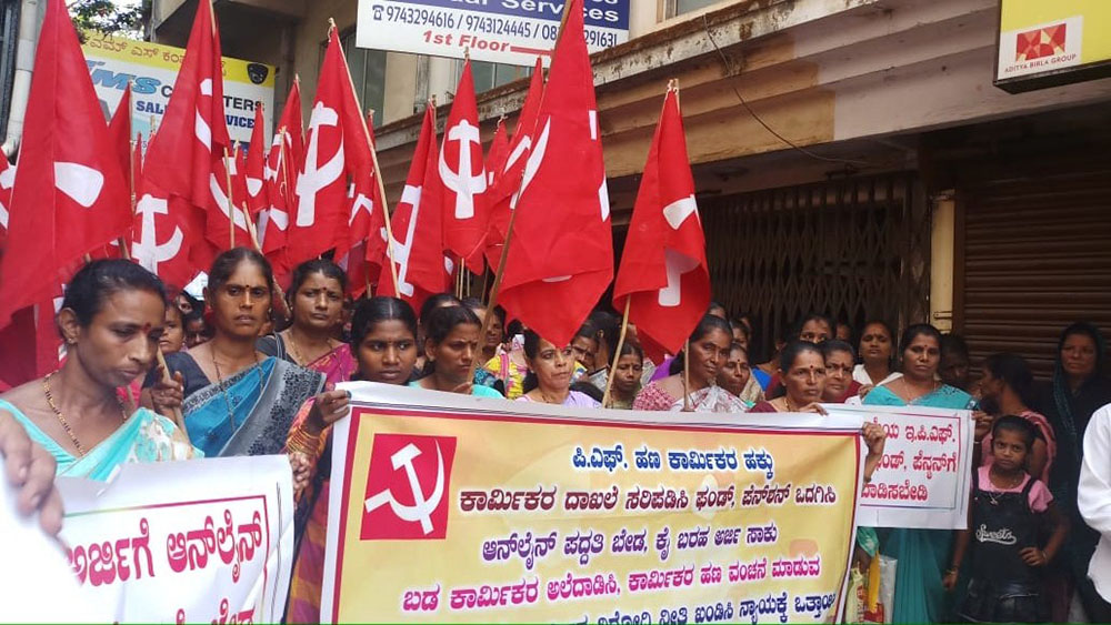 ಪಿಎಫ್ಗಾಗಿ ಆನ್ಲೈನ್ ಅರ್ಜಿ ಕಡ್ಡಾಯ ವಿರೋಧಿಸಿ ಧರಣಿ