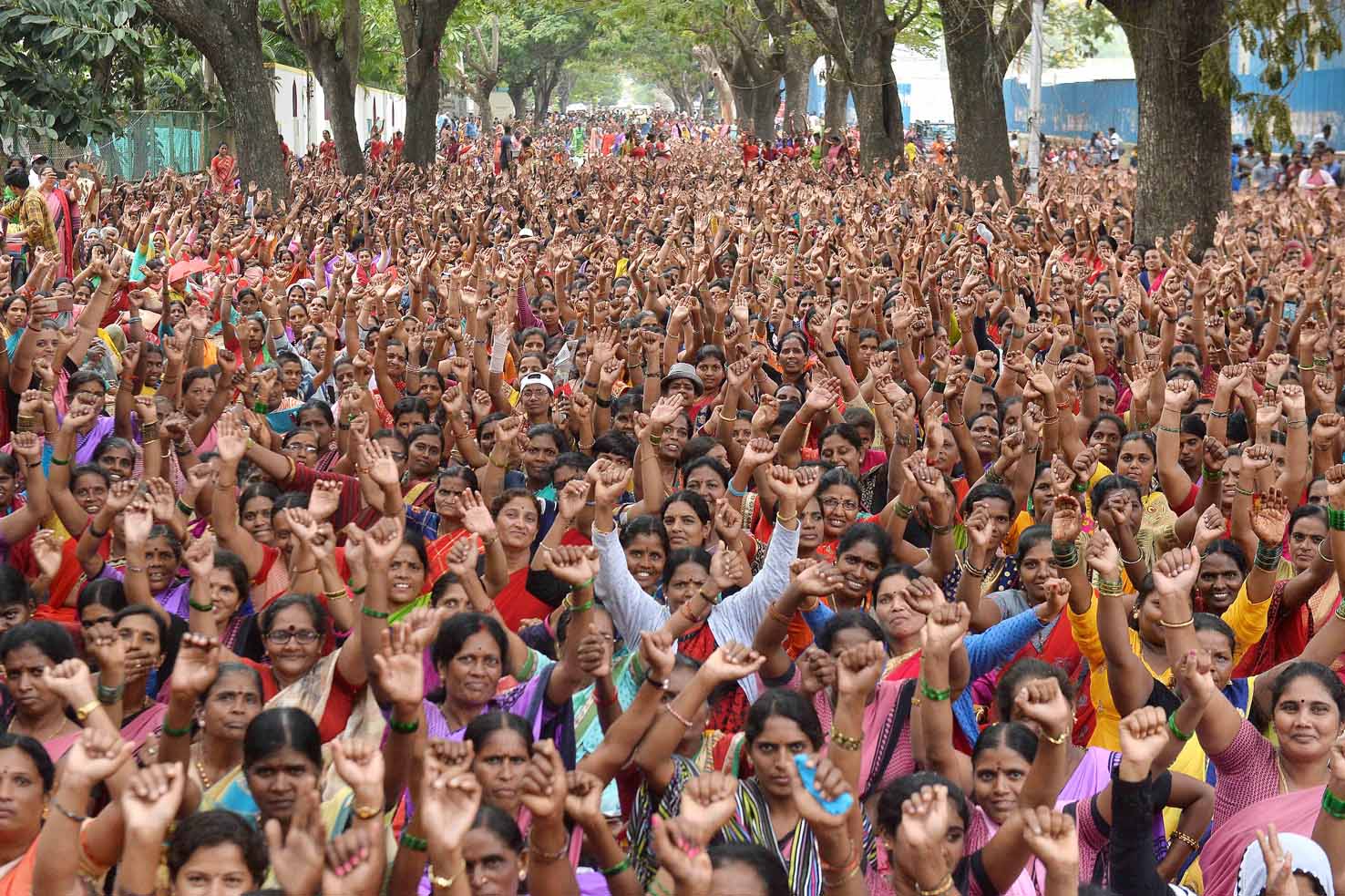 ಈ ವೇಳೆ ಸಿಐಟಿಯು ಪ್ರಧಾನ ಕಾರ್ಯದರ್ಶಿ ಎಚ್.ಎಸ್.ಸುನಂದಾ, ಎಐಟಿಯುಸಿ ಅಧ್ಯಕ್ಷ ರಾಮಚಂದ್ರಪ್ಪ, ಎಐಟಿಯುಸಿ ಪ್ರಧಾನ ಕಾರ್ಯದರ್ಶಿ ಎಮ್.ಜಯಮ್ಮ, ಸ್ವತಂತ್ರ ಸಂಘಟನೆಯ ಅಧ್ಯಕ್ಷ ಜಯಲಕ್ಷ್ಮಿ, ಸ್ವತಂತ್ರ ಸಂಘಟನೆಯ ಪ್ರಧಾನ ಕಾರ್ಯದರ್ಶಿ ಉಮಾಮಣಿ ಮತ್ತಿತರರಿದ್ದರು.