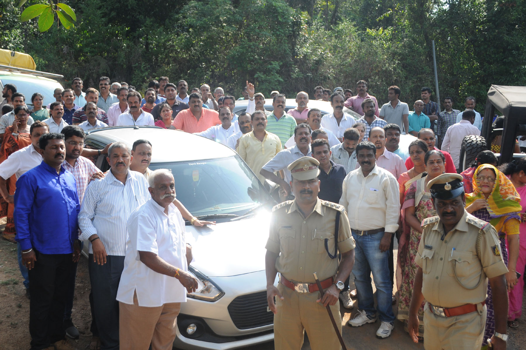 ಮಡಿಕೇರಿ ಜೂ.1 : ರಾಜ್ಯ ಪ್ರವಾಸೋದ್ಯಮ ಸಚಿವ ಮತ್ತು ಕೊಡಗು ಜಿಲ್ಲಾ ಉಸ್ತುವಾರಿ ಸಚಿವ ಸಚಿವ ಸಾ.ರಾ. ಮಹೇಶ್ ಅವರು ಕರ್ಣಂಗೇರಿ ಬಳಿ ಸಂತ್ರಸ್ತರ ಮನೆ ನಿರ್ಮಾಣ ಕಾಮಗಾರಿಯನ್ನು ಪರಿಶೀಲನೆ ನಡೆಸಲು ಆಗಮಿಸಿದ ಸಂದರ್ಭ ಜಿಲ್ಲಾ ಬಿಜೆಪಿ ಪ್ರಮುಖರು, ಸಂತ್ರಸ್ತರ ಹೋರಾಟ ಸಮಿತಿ ಪದಾಧಿಕಾರಿಗಳು ಮತ್ತು ಸಂತ್ರಸ್ತರು ಸಚಿವರ ಕಾರನ್ನು ಅಡ್ಡಗಟ್ಟಿ ಮುತ್ತಿಗೆ ಹಾಕಿ ಪ್ರತಿಭಟನೆ ನಡೆಸಿದ ಘಟನೆ ನಡೆಯಿತು.