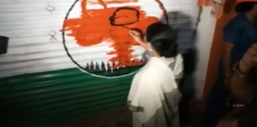 ಬಿಜೆಪಿ ಕಚೇರಿಯ ಗೋಡೆ ಮೇಲೆ ಟಿಎಂಸಿ ಚಿಹ್ನೆ ರಚಿಸಿದ ಮಮತಾ ಬ್ಯಾನರ್ಜಿ: ವಿಡಿಯೋ ವೈರಲ್