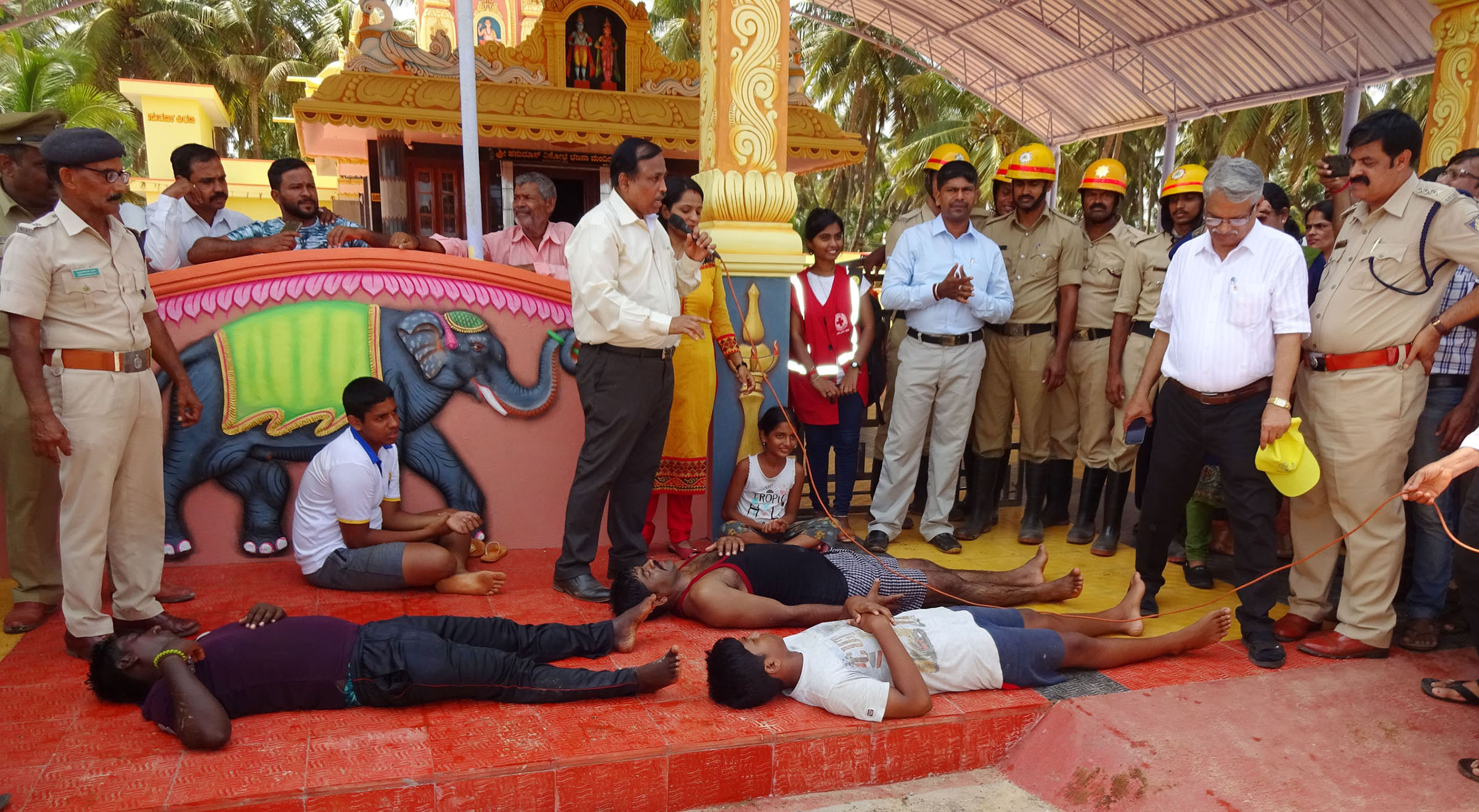 ಉಡುಪಿ, ಜೂ.8: ಸುನಾಮಿಯಂಥ ಪ್ರಾಕೃತಿಕ ವಿಕೋಪ ಸಂದರ್ಭದಲ್ಲಿ ಕೈಗೊಳ್ಳಬೇಕಾದ ತುರ್ತುಕ್ರಮಗಳು ಮತ್ತು ಸಂಬಂಧಪಟ್ಟ ಎಲ್ಲಾ ಇಲಾಖೆಗಳು ಪರಸ್ಪರ ಸಮನ್ವಯದಿಂದ ಕಾರ್ಯ ನಿರ್ವಹಿಸುವ ಕುರಿತ ಅಣುಕು ಪ್ರದರ್ಶನ ವೊಂದು ಶನಿವಾರ ಮಲ್ಪೆಯ ಹನುಮಾನ್ ಭಜನಾ ಮಂದಿರದ ಬಳಿ ನಡೆಯಿತು.