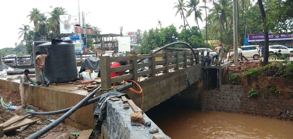 ನಗರಸಭೆಯು 75 ಲಕ್ಷ ರೂ. ವೆಚ್ಚದಲ್ಲಿ ಕೈಗೆತ್ತಿಕೊಂಡ ಕಲ್ಸಂಕ ಸೇತುವೆಯ ಅಗಲೀಕರಣ ಕಾಮಗಾರಿಯು ಆಮೆಗತಿಯಲ್ಲಿ ನಡೆಯುತ್ತಿದ್ದು, ವರ್ಷ ಕಳೆದರೂ ಕಾಮಗಾರಿ ಪೂರ್ಣಗೊಳ್ಳದ ಪರಿಣಾಮ ಹಲವು ಸಮಸ್ಯೆಗಳು ಉದ್ಭವಿಸಿವೆ. ಇದೀಗ ಕಾಮಗಾರಿ ಅಂತಿಮ ಹಂತದಲ್ಲಿದ್ದು, ಮಳೆಯ ಮಧ್ಯೆ ತರಾತುರಿಯಲ್ಲಿ ಕಾಮಗಾರಿಯನ್ನು ಮುಂದುವರೆಸಲಾಗಿದೆ.