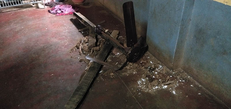 ಈ ಹಾಸ್ಟೆಲ್ ಕಟ್ಟಡದ ಕೊಠಡಿಯೊಂದರ ಮೇಲ್ಛಾಚಣಿ ಕುಸಿದು ಫ್ಯಾನ್ ಏಕಾಏಕಿ ಕಳಚಿ ಬಿದ್ದಿದ್ದು, ಅದೃಷ್ಟವಷಾತ್ ಯಾವುದೇ ಅಪಾಯ ಸಂಭವಿಸಿಲ್ಲ.