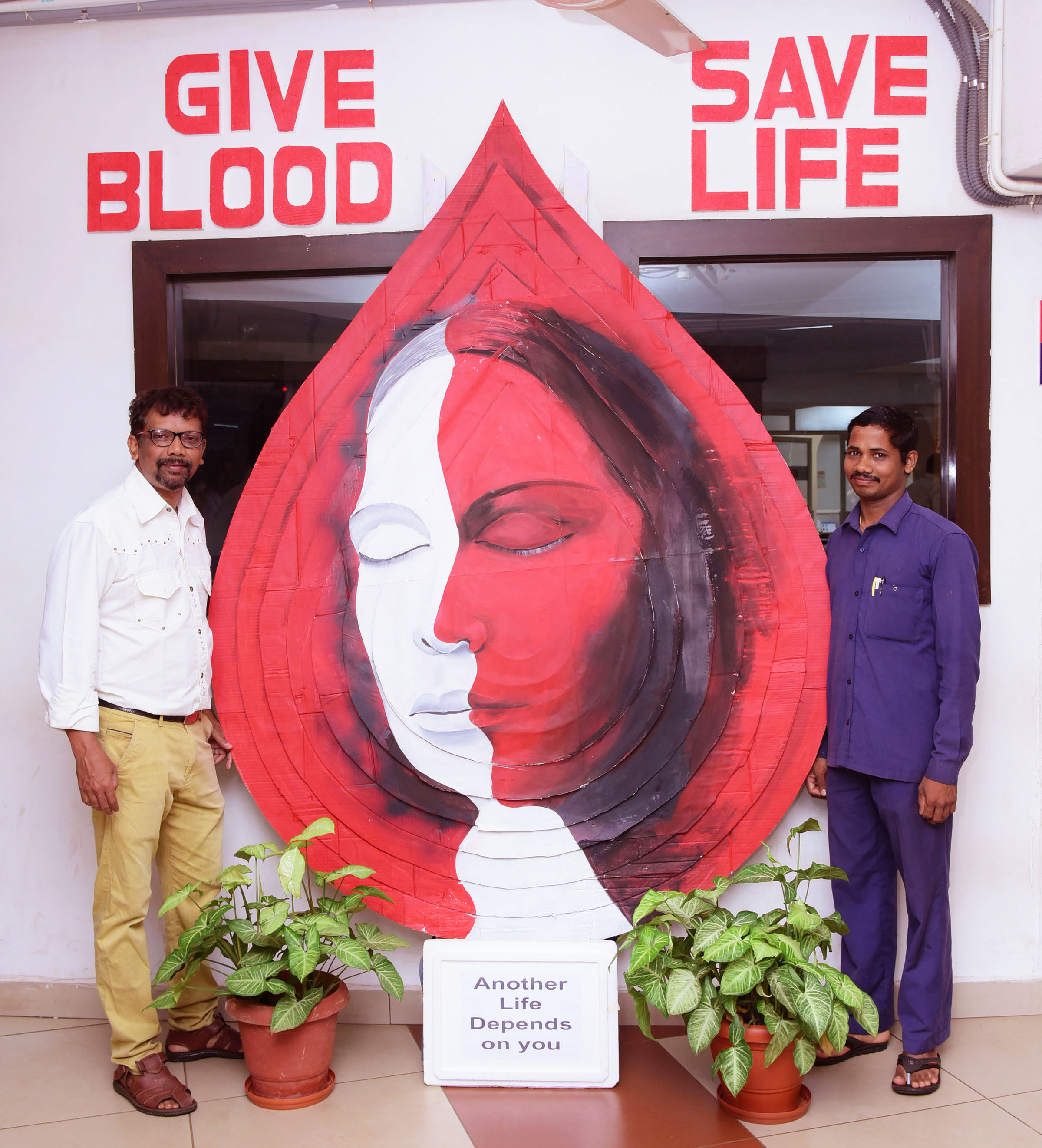 ಈ ಕಲಾಕೃತಿಯನ್ನು ಕೆಎಂಸಿ ಮಣಿಪಾಲದ ವೈದ್ಯಕೀಯ ಅಧೀಕ್ಷಕ ಡಾ. ಅವಿನಾಶ್ ಶೆಟ್ಟಿ ಮತ್ತು ಸಿಓಓ ಸಿ.ಜಿ.ಮುತ್ತಣ್ಣ ಅನಾವರಣಗೊಳಿಸಿದರು. ಈ ಕಲಾಕೃತಿಯನ್ನು ಪರಿಸರ ಸ್ನೇಹಿ ಸಲಕರಣೆಗಳಾದ ರಟ್ಟು, ಕಾಗದ ಮುಂತಾದ ವಸ್ತುಗಳನ್ನು ಬಳಸಿ ರಚಿಸಲಾಗಿದೆ. ಇದರಲ್ಲಿ ರಕ್ತದಾನಿಯನ್ನು ಮತ್ತು ರಕ್ತ ಸ್ವೀಕರಿಸುವವರನ್ನು ಒಂದೇ ಮುಖ ದಲ್ಲಿ ಮತ್ತು ಇನ್ನೊಂದು ಜೀವವು ರಕ್ತದಾನಿಯನ್ನು ಯಾವ ರೀತಿ ಅವಲಂಬಿಸಿದೆ ಎನ್ನುವುದನ್ನು ಪ್ರತಿಬಿಂಬಿಸಲಾಗಿದೆ.