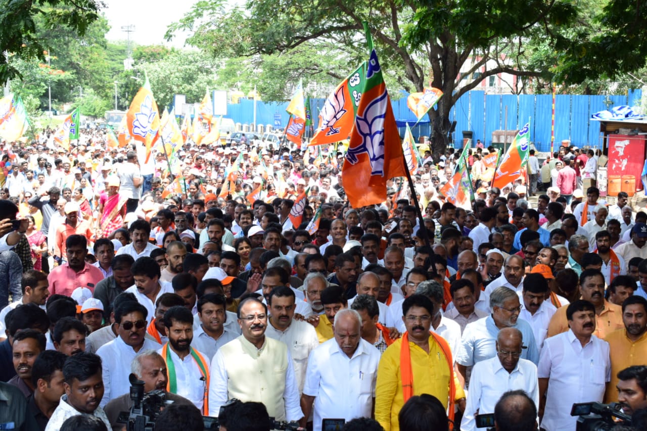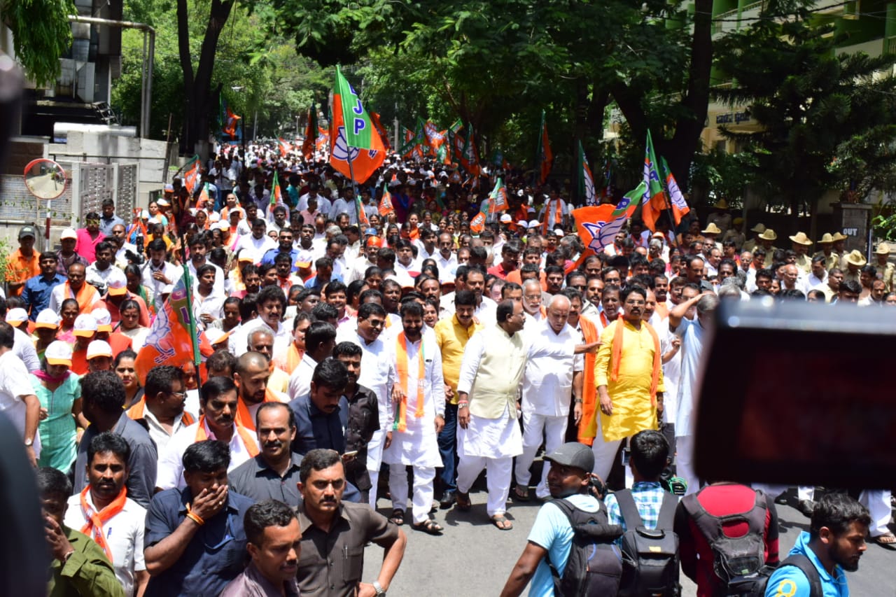 ಇಲ್ಲಿನ ಆನಂದರಾವ್ ವೃತ್ತದಿಂದ ಬಿಜೆಪಿ ರಾಜ್ಯ ಘಟಕ ಅಧ್ಯಕ್ಷ ಬಿ.ಎಸ್. ಯಡಿಯೂರಪ್ಪ ನೇತೃತ್ವದಲ್ಲಿ ಪಕ್ಷದ ಮುಖಂಡರಾದ ಅರವಿಂದ ಲಿಂಬಾವಳಿ, ಆರ್.ಅಶೋಕ್ ಸೇರಿದಂತೆ ಸಂಸದರು, ಶಾಸಕರು, ವಿಧಾನಪರಿಷತ್ ಸದಸ್ಯರು, ಬಿಬಿಎಂಪಿ ಸದಸ್ಯರು ಪಾದಯಾತ್ರೆ ಮೂಲಕ ಮುಖ್ಯಮಂತ್ರಿಗಳ ಅಧಿಕೃತ ಗೃಹ ಕಚೇರಿ ಕೃಷ್ಣಗೆ ಮುತ್ತಿಗೆ ಹಾಕಲು ಯತ್ನಿಸಿದರು. ಆದರೆ, ಈ ವೇಳೆ ಪ್ರತಿಭಟನಾ ನಿರತರನ್ನು ಪೊಲೀಸರು ವಶಕ್ಕೆ ಪಡೆದರು.