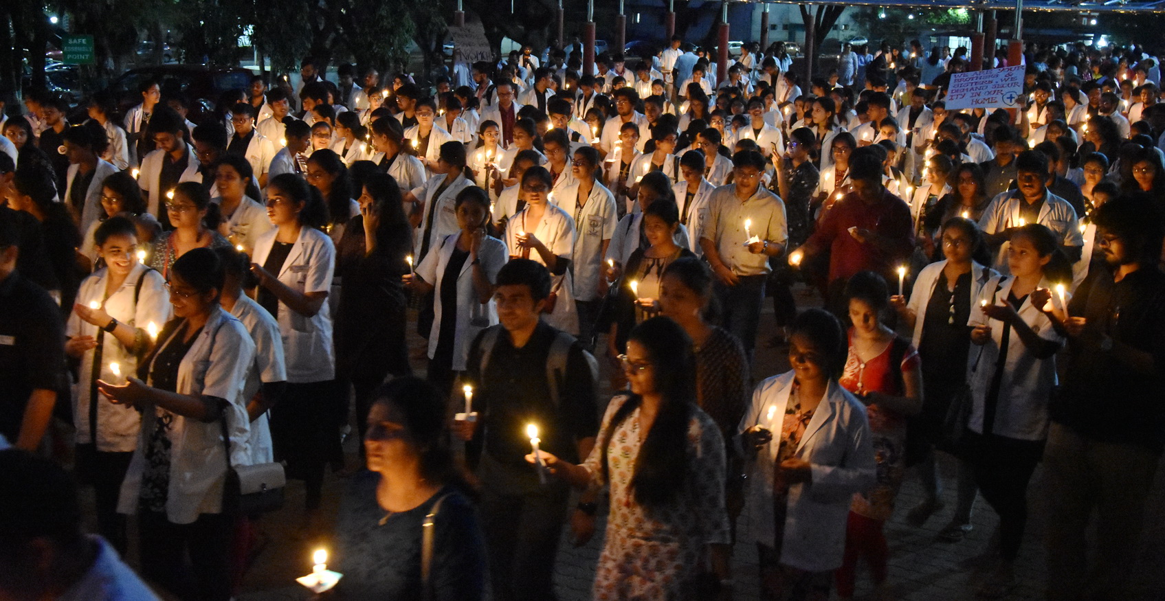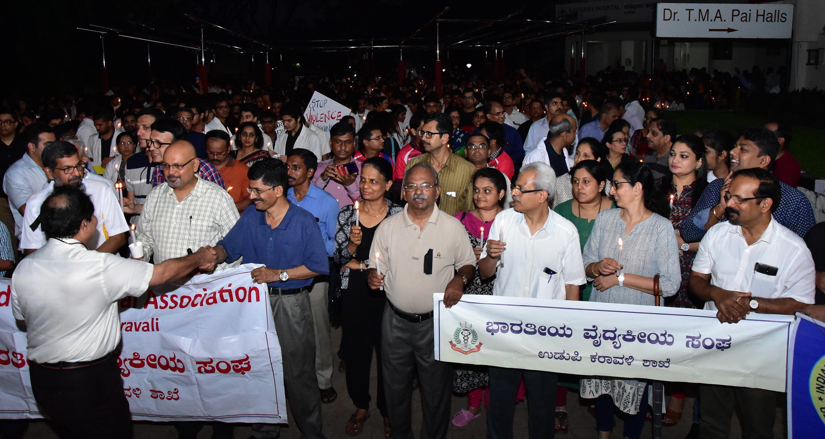 ದೇಶದಲ್ಲಿ ವೈದ್ಯರ ಮೇಲೆ ಹಲ್ಲೆ ಘಟನೆಗಳು ಹೆಚ್ಚುತ್ತಿರುವುದನ್ನು ಖಂಡಿಸಿ ಐಎಂಎಯ ಉಡುಪಿ-ಕರಾವಳಿ ಶಾಖೆಯ ನೇತೃತ್ವದಲ್ಲಿ ಇಂದು ರಾತ್ರಿ ಮಣಿಪಾಲದಲ್ಲಿ ಕ್ಯಾಂಡಲ್ಲೈಟ್ ಜಾಥಾ ನಡೆಯಿತು.