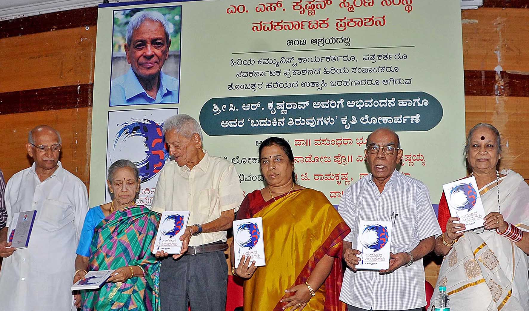 ರವಿವಾರ ನಗರದ ಗಾಂಧಿ ಭವನದಲ್ಲಿ ಎಂ.ಎಸ್.ಕೃಷ್ಣನ್ ಸ್ಮರಣ ಸಂಸ್ಥೆ ಮತ್ತು ನವ ಕರ್ನಾಟಕ ಪ್ರಕಾಶನ ಆಯೋಜಿಸಿದ್ದ ಸಿ.ಆರ್.ಕೃಷ್ಣರಾವ್ಗೆ ಅಭಿನಂದನೆ ಹಾಗೂ ಬದುಕಿನ ತಿರುವುಗಳ ಪುಸ್ತಕ ಬಿಡುಗಡೆ ಕಾರ್ಯಕ್ರಮದಲ್ಲಿ ಮಾತನಾಡಿದ ಅವರು, ಸಿಆರ್ಕೆ ಕೃತಿಗಳಲ್ಲಿ ನಾವು ಎಂಬ ಸಮಗ್ರ ದೃಷ್ಠಿಕೋನವನ್ನು ಕೃತಿಯುದ್ದಕ್ಕೂ ಕಟ್ಟಿಕೊಟ್ಟಿರುವುದನ್ನು ಕಾಣಬಹುದಾಗಿದೆ ಎಂದರು.