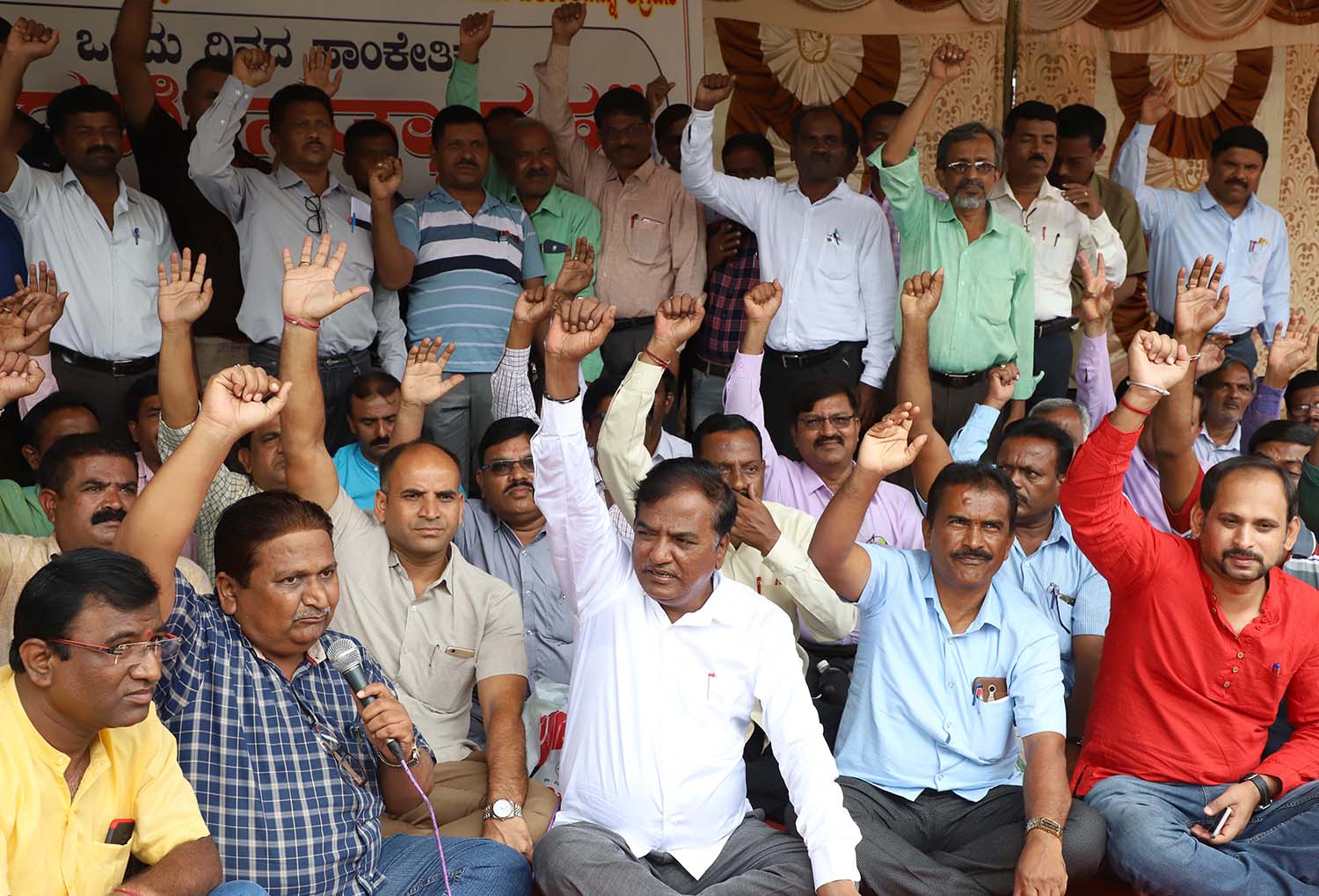 ಮಂಗಳವಾರ ನಗರದ ಮೌರ್ಯ ವೃತ್ತದ ಗಾಂಧಿ ಪ್ರತಿಮೆ ಬಳಿ ಧರಣಿ ಸತ್ಯಾಗ್ರಹ ನಡೆಸಿದ ಉಪನ್ಯಾಸಕರ ಸಂಘದ ಪದಾಧಿಕಾರಿಗಳು ಹಾಗೂ ಸದಸ್ಯರು, ದ್ವಿತೀಯ ಪಿಯುಸಿ ಉತ್ತರ ಪತ್ರಿಕೆಗಳ ಮೌಲ್ಯ ಮಾಪನಕ್ಕೆ ನೀಡಬೇಕಾದ ಸಂಭಾವನೆಯನ್ನು ಸರಕಾರ ಇದುವರೆಗೂ ನೀಡಿಲ್ಲ. ಕೂಡಲೇ ಸಂಭಾವನೆಯನ್ನು ಚೆಕ್ ಮೂಲಕ ವಿತರಿಸಬೇಕೆಂದು ಸಂಘದ ಅಧ್ಯಕ್ಷ ತಿಮ್ಮಯ್ಯ ಪುರ್ಲೆ ಸರಕಾರವನ್ನು ಒತ್ತಾಯಿಸಿದರು.