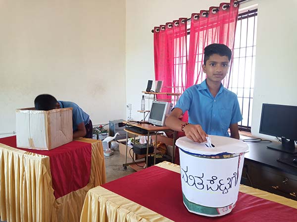 ಪ್ರಜಾಪ್ರಭುತ್ವ ಮಾದರಿಯಲ್ಲಿ ನಡೆದ ಶಾಲಾ ಚುನಾವಣೆಯಲ್ಲಿ ವಿದ್ಯಾರ್ಥಿಗಳು ಮತ ಚಲಾಯಿಸಿ ಸಂಭ್ರಮಿಸಿದರು.