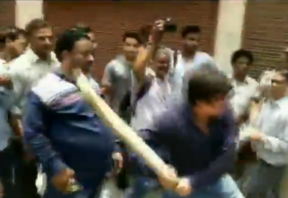 #WATCH Madhya Pradesh: Akash Vijayvargiya, BJP MLA and son of senior BJP leader Kailash Vijayvargiya, thrashes a Municipal Corporation officer with a cricket bat, in Indore. The officers were in the area for an anti-encroachment drive. pic.twitter.com/AG4MfP6xu0