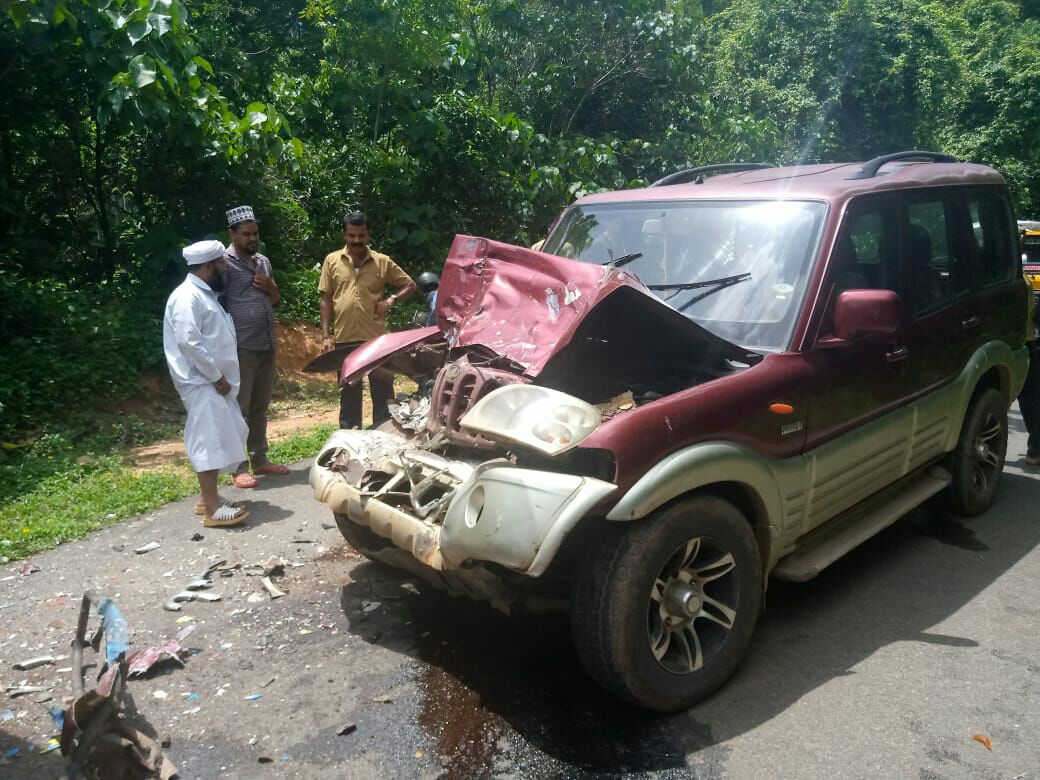 ಕನ್ಯಾನ: ಖಾಸಗಿ ಬಸ್ - ಸ್ಕಾರ್ಪಿಯೋ ವಾಹನ ಮುಖಾಮುಖಿ ಢಿಕ್ಕಿ