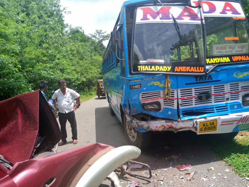 ಕನ್ಯಾನ ಕಡೆಯಿಂದ ಆನೆಕಲ್ಲು ಕಡೆಗೆ ತೆರಳುತ್ತಿದ್ದ ಸ್ಕೋರ್ಪಿಯೊ ವಾಹನಕ್ಕೆ ಕನ್ಯಾನ ಕಡೆಗೆ ಬರುತ್ತಿದ್ದ ಬಸ್ ಢಿಕ್ಕಿ ಹೊಡೆದು ಈ ಘಟನೆ ಸಂಭವಿಸಿದೆ. ಸ್ಥಳಕ್ಕೆ ವಿಟ್ಲ ಪೊಲೀಸರು ಭೇಟಿ ಪರಿಶೀಲನೆ ನಡೆಸಿದ್ದಾರೆ.
