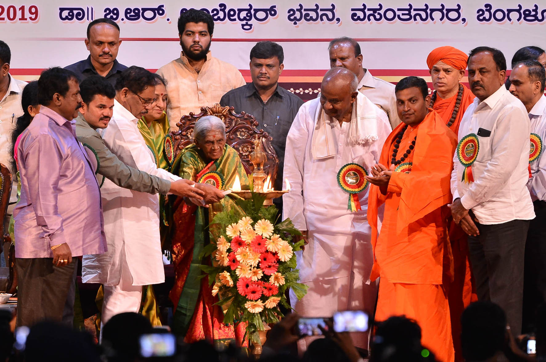 ಶನಿವಾರ ನಗರದ ಅಂಬೇಡ್ಕರ್ ಭವನದಲ್ಲಿ ಸಿದ್ಧಾರ್ಥ ಶಿಕ್ಷಣ ಸಂಸ್ಥೆ ಹಾಗೂ ಸಾಲುಮರದ ತಿಮ್ಮಕ್ಕ ಇಂಟರ್ ನ್ಯಾಷನಲ್ ಫೌಂಡೇಶನ್ ಆಶ್ರಯದಲ್ಲಿ ಸಾಲುಮರದ ತಿಮ್ಮಕ್ಕ ನ್ಯಾಷನಲ್ ಗ್ರೀನರಿ ಅವಾರ್ಡ್ 2018-19ನೆ ಸಾಲಿನ ಪ್ರಶಸ್ತಿ ಪ್ರದಾನ ಹಾಗೂ ಡಾ.ಜಿ.ಪರಮೇಶ್ವರ್ ದಂಪತಿಗೆ ಅಭಿನಂದನೆ ಸಲ್ಲಿಸಲಾಯಿತು.
