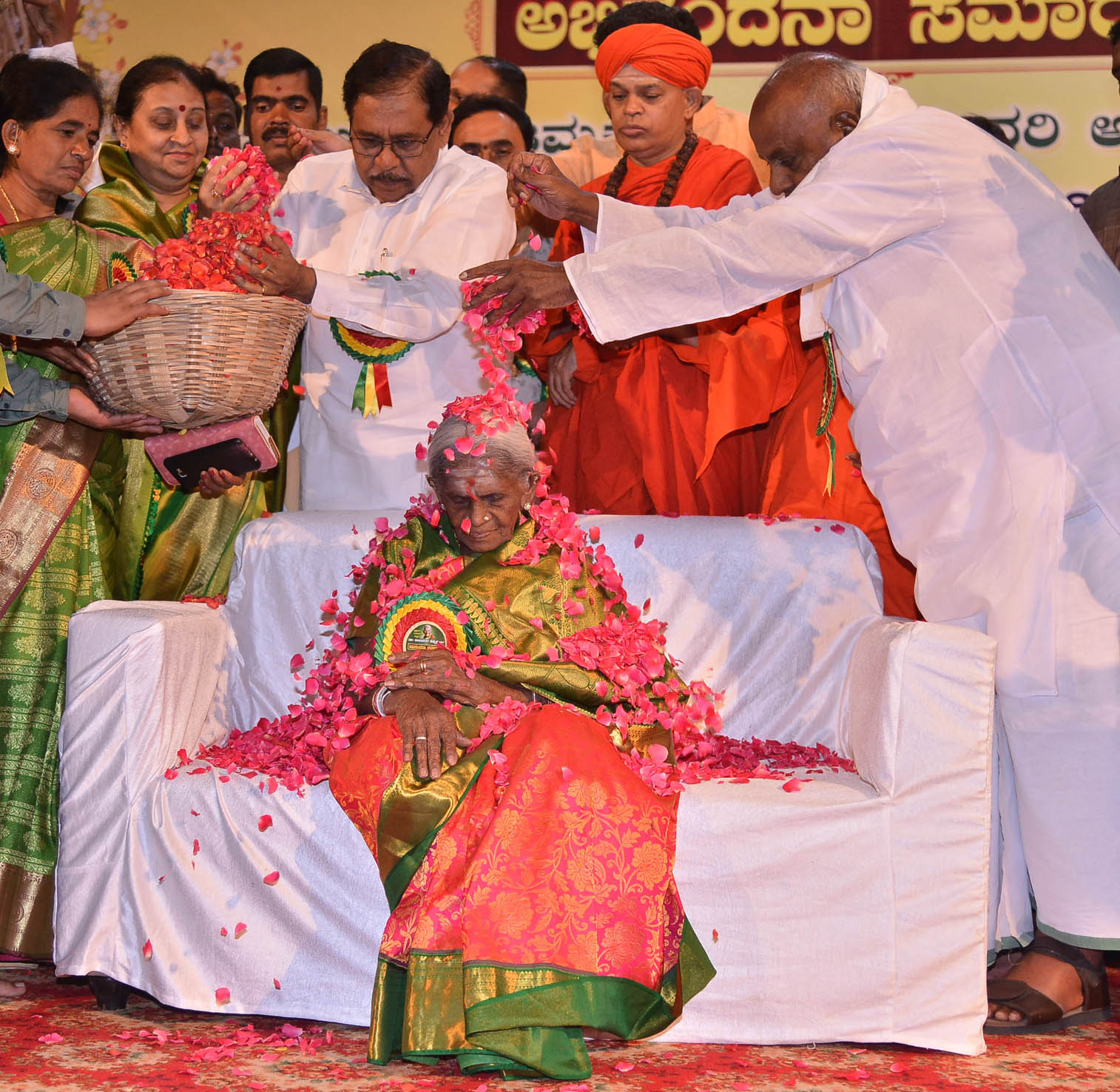 ಇದೇ ವೇಳೆ ಸಾಲುಮರದ ತಿಮ್ಮಕ್ಕ ಅವರ ಭಾವಚಿತ್ರವಿರುವ ವಿಶೇಷ ಅಂಚೇ ಲಕೋಟೆ ಬಿಡುಗಡೆ ಮಾಡಲಾಯಿತು. ಕಾರ್ಯಕ್ರಮದಲ್ಲಿ ಮುರುಘ ಮಠದ ಶಿವಮೂರ್ತಿ ಮುರುಘ ಶರಣರು, ಭೋವಿ ಗುರುಪೀಠದ ಇಮ್ಮಡಿ ಸಿದ್ದರಾಮೇಶ್ವರ ಸ್ವಾಮಿ, ಮಾಜಿ ಪ್ರಧಾನಿ ದೇವೇಗೌಡ ಸೇರಿದಂತೆ ಇನ್ನಿತರರು ಹಾಜರಿದ್ದರು.