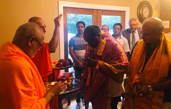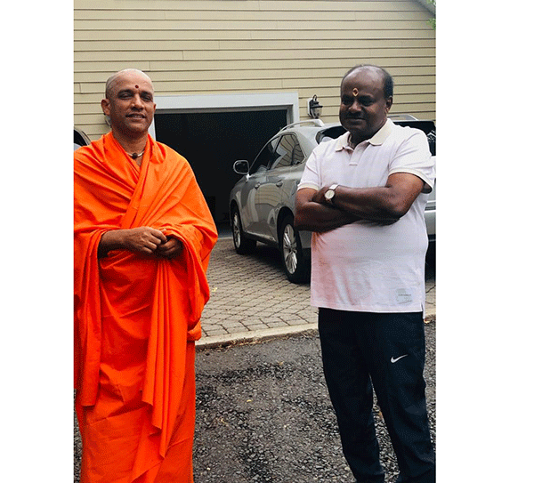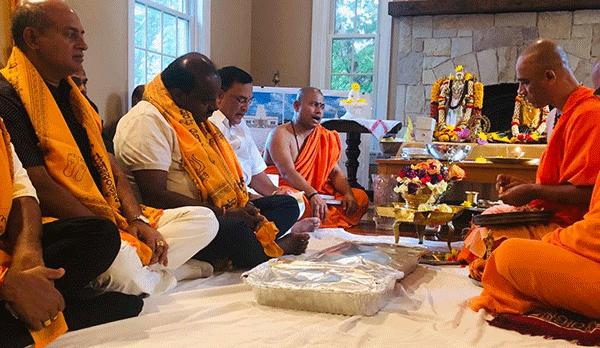 ಬೆಂಗಳೂರು, ಜೂ.30: ಮುಖ್ಯಮಂತ್ರಿ ಎಚ್.ಡಿ.ಕುಮಾರಸ್ವಾಮಿ ಜೂನ್ 29ರಂದು ನ್ಯೂ ಜೆರ್ಸಿಯ ಸೋಮರ್ಸೆಟ್ ಎಂಬಲ್ಲಿ 20 ಎಕರೆ ಪ್ರದೇಶದಲ್ಲಿ ಆದಿಚುಂಚನಗಿರಿ ಮಹಾಸಂಸ್ಥಾನ ನಿರ್ಮಿಸುತ್ತಿರುವ ಶ್ರೀ ಕಾಲಭೈರವೇಶ್ವರ ಸ್ವಾಮಿ ದೇವಾಲಯದ ಭೂಮಿ ಪೂಜೆಗೆ ಸಂಬಂಧಿಸಿದಂತೆ ವಿವಿಧ ಧಾರ್ಮಿಕ ವಿಧಿ ವಿಧಾನಗಳಲ್ಲಿ ಪಾಲ್ಗೊಂಡರು.