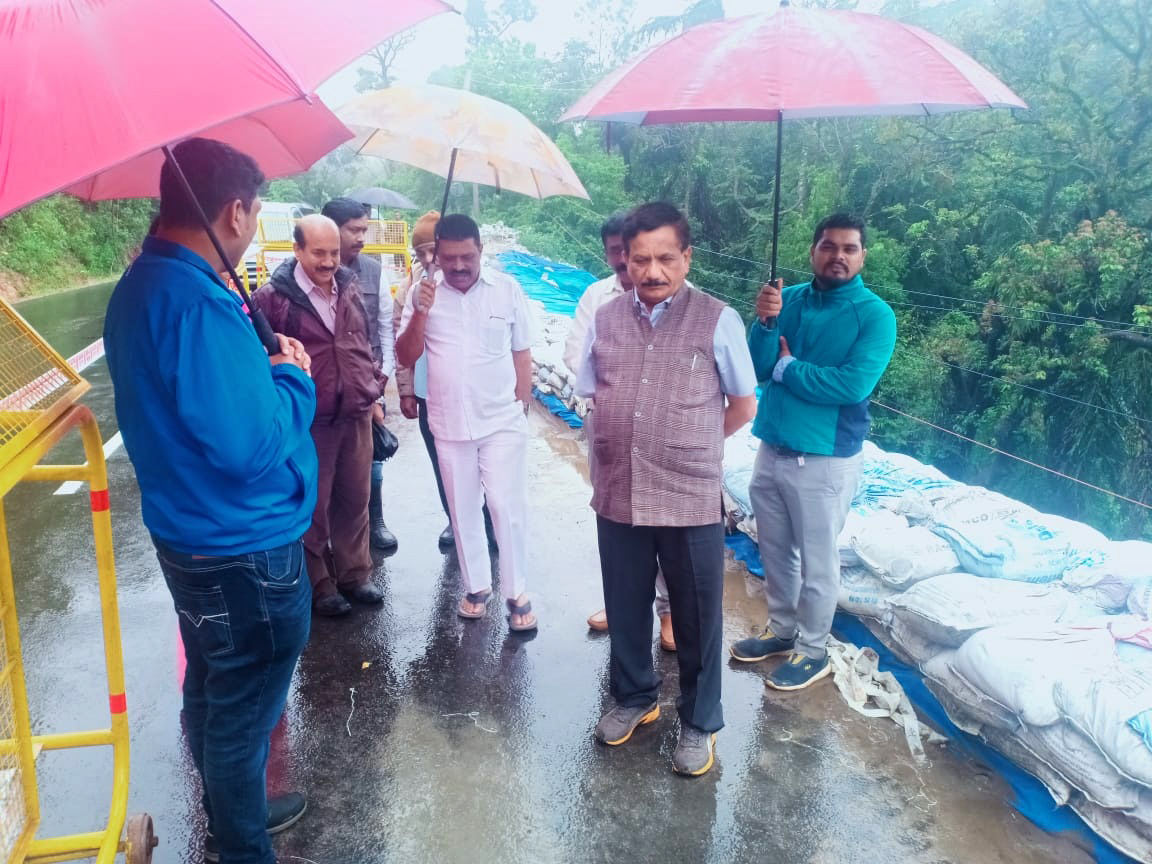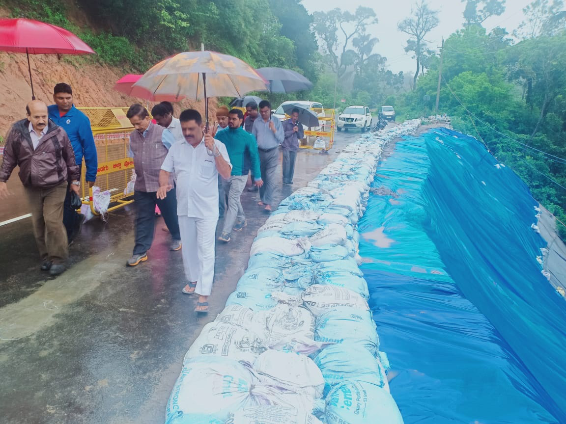 ಶಾಸಕದ್ವಯರಾದ ಕೆ.ಜಿ.ಬೋಪಯ್ಯ ಹಾಗೂ ಎಂ.ಪಿ.ಅಪ್ಪಚ್ಚು ರಂಜನ್ ಅವರು ಹೆದ್ದಾರಿ ಬಿರುಕು ಬಿಟ್ಟ ಪ್ರದೇಶಕ್ಕೆ ಭೇಟಿ ನೀಡಿ ಪರಿಶೀಲಿಸಿದರು. ರಸ್ತೆಯ ಮೇಲೆ ನೀರು ಹರಿದ ಹಿನ್ನೆಲೆಯಲ್ಲಿ ಬಿರುಕು ಮೂಡಿದ್ದು, ಚರಂಡಿ ವ್ಯವಸ್ಥೆಗೆ ಕ್ರಮ ಕೈಗೊಳ್ಳುವಂತೆ ಇಂಜಿನಿಯರ್ ಹಾಗೂ ಗುತ್ತಿಗೆದಾರರಿಗೆ ಸೂಚನೆ ನೀಡಿದರು. ರಸ್ತೆ ದುರಸ್ತಿ ಸಂದರ್ಭ ಅಳವಡಿಸಿಕೊಳ್ಳಲಾದ ತಂತ್ರಜ್ಞಾನದ ಬಗ್ಗೆ ಶಾಸಕರು ಮಾಹಿತಿ ಪಡೆದರು. ಕುಸಿದಿರುವ ಸ್ಥಳದಲ್ಲಿ ಕಾಂಕ್ರೀಟ್ ತಡೆಗೋಡೆ ಮತ್ತು ಕಾಂಕ್ರೀಟ್ ಒಳಚರಂಡಿ ವ್ಯವಸ್ಥೆ ಮಾಡಬೇಕೆಂದರು. ಯಾವುದೇ ಕಾರಣಕ್ಕೂ ವಾಹನಗಳ ಸಂಚಾರಕ್ಕೆ ತಡೆಯಾಗದಂತೆ ನೋಡಿಕೊಳ್ಳಬೇಕೆಂದು ಶಾಸಕರು ಹೆದ್ದಾರಿ ಪ್ರಾಧಿಕಾರದ ಅಧಿಕಾರಿಗೆ ಸೂಚಸಿದರು.