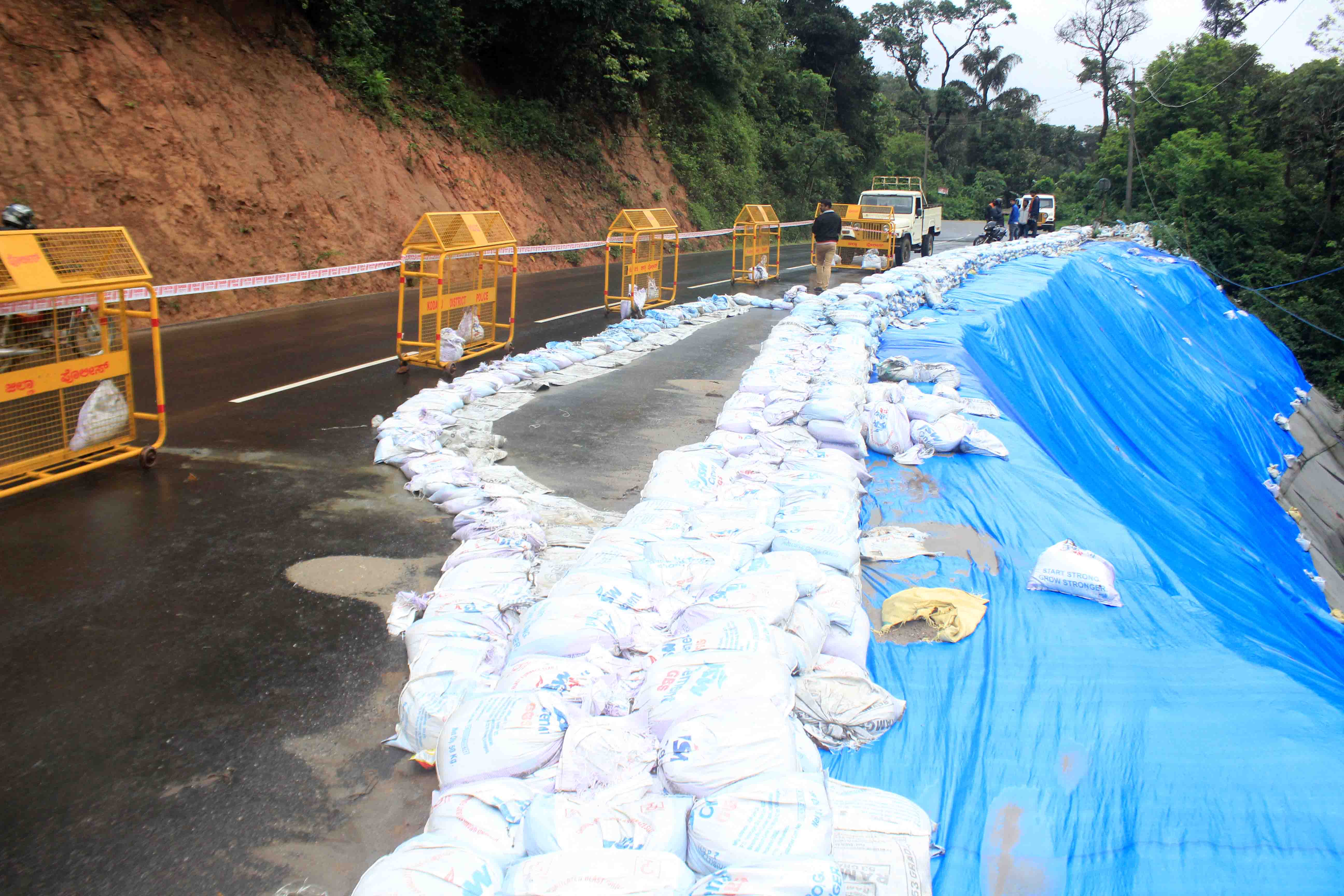 ರಸ್ತೆಯ ಮೇಲೆ ನೀರು ಹರಿಯದಂತೆ ಸ್ಯಾಂಡ್ ಬಂಡ್ಗಳನ್ನು ಅಳವಡಿಸಿ ರಸ್ತೆ ಕುಸಿಯದಂತೆ ಕ್ರಮಕೈಗೊಳ್ಳಲಾಗಿದೆ. ಭಾರೀ ವಾಹನಗಳ ಸಂಚಾರದ ಮಾರ್ಗವನ್ನು ಈಗಾಗಲೇ ಬದಲಾಯಿಸಲಾಗಿದ್ದು, ರಸ್ತೆಯ ಅರ್ಧಭಾಗದ ಮೂಲಕ ಇತರ ವಾಹನಗಳು ಸಂಚರಿಸುತ್ತಿವೆ. ಮುಂಜಾಗೃತಾ ಕ್ರಮವಾಗಿ ಬ್ಯಾರಿಕೇಡ್ಗಳನ್ನು ಅಳವಡಿಸಿ ಪೊಲೀಸರು ನಿಗಾ ವಹಿಸಿದ್ದಾರೆ. ಹೆದ್ದಾರಿಯ ಎರಡೂ ಬದಿಗಳಲ್ಲಿ ಜೆ.ಸಿ.ಬಿ ಬಳಸಿ, ಚರಂಡಿಗಳನ್ನು ತೆಗೆಯಲಾಗುತ್ತಿದೆ.