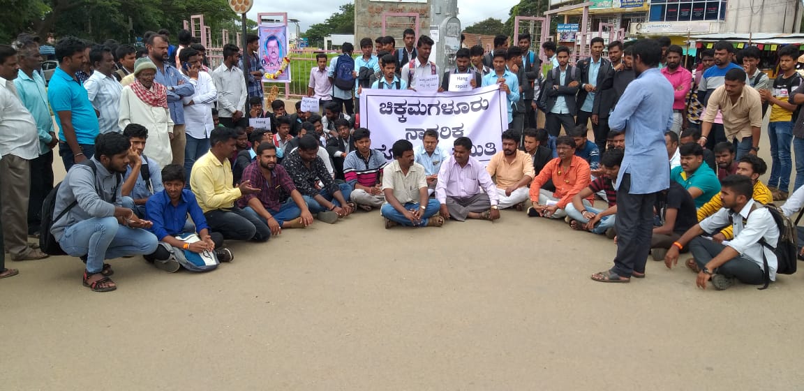 ಚಿಕ್ಕಮಗಳೂರು, ಜು.5: ಪುತ್ತೂರು ಕಾಲೇಜು ವಿದ್ಯಾರ್ಥಿನಿಯ ಮೇಲೆ ಸಾಮೂಹಿಕ ಅತ್ಯಾಚಾರ ಪ್ರಕರಣ ಹಾಗೂ ಮಾದಕ ವಸ್ತುಗಳ ಮಾರಾಟ ಮಾಫಿಯವನ್ನು ಮಟ್ಟಹಾಕುವಂತೆ ಆಗ್ರಹಿಸಿ ನಾಗರಿಕ ಹೊರಾಟ ಸಮಿತಿಯ ನೇತೃತ್ವದಲ್ಲಿ ಶುಕ್ರವಾರ ನಗರದ ಆಝಾದ್ ವೃತ್ತದಲ್ಲಿ ಪ್ರತಿಭಟನೆ ನಡೆಯಿತು.