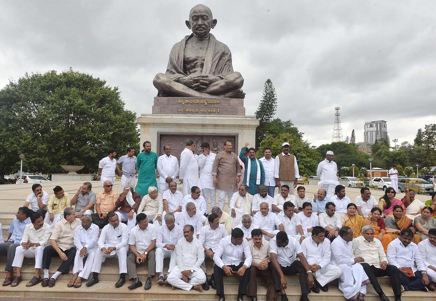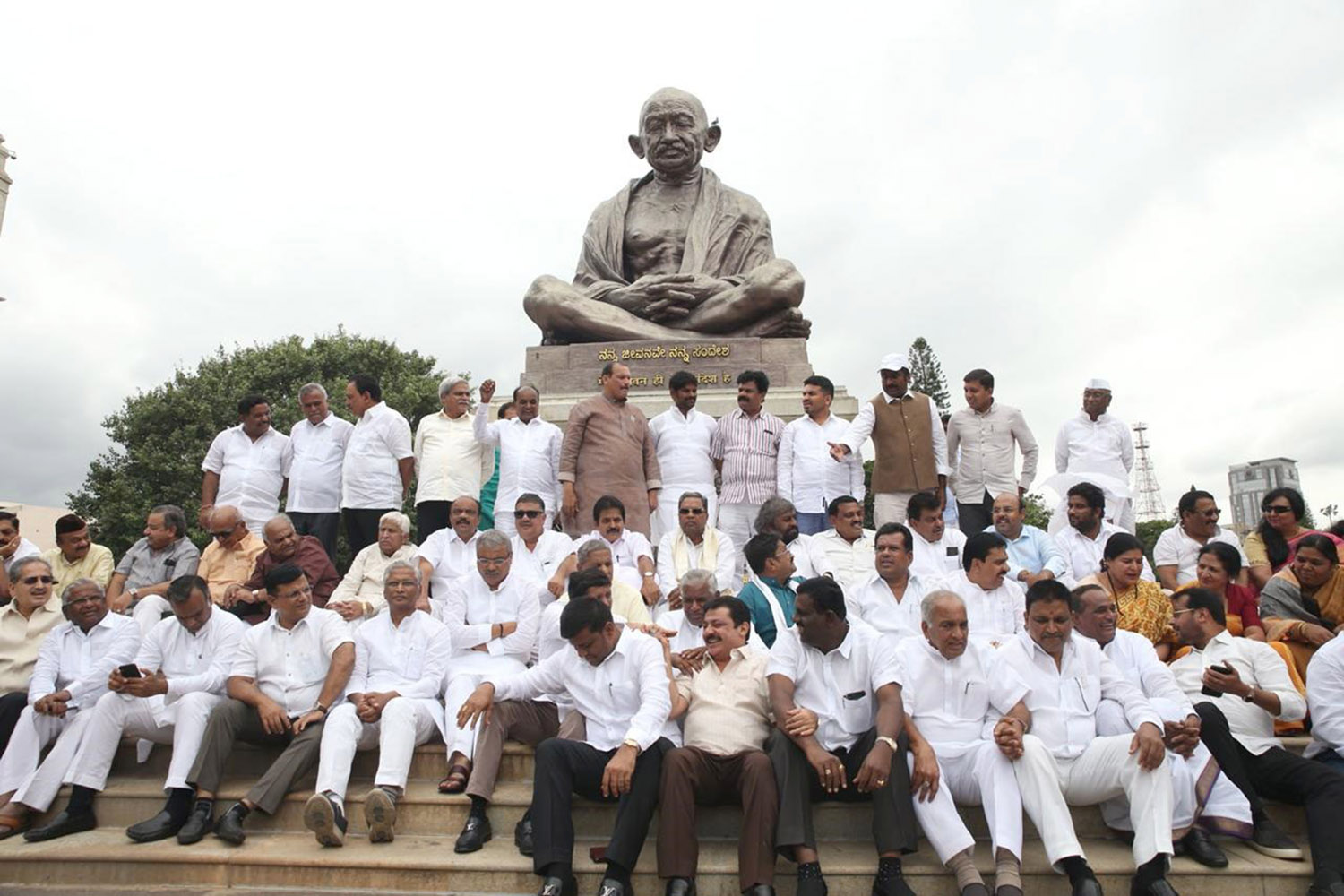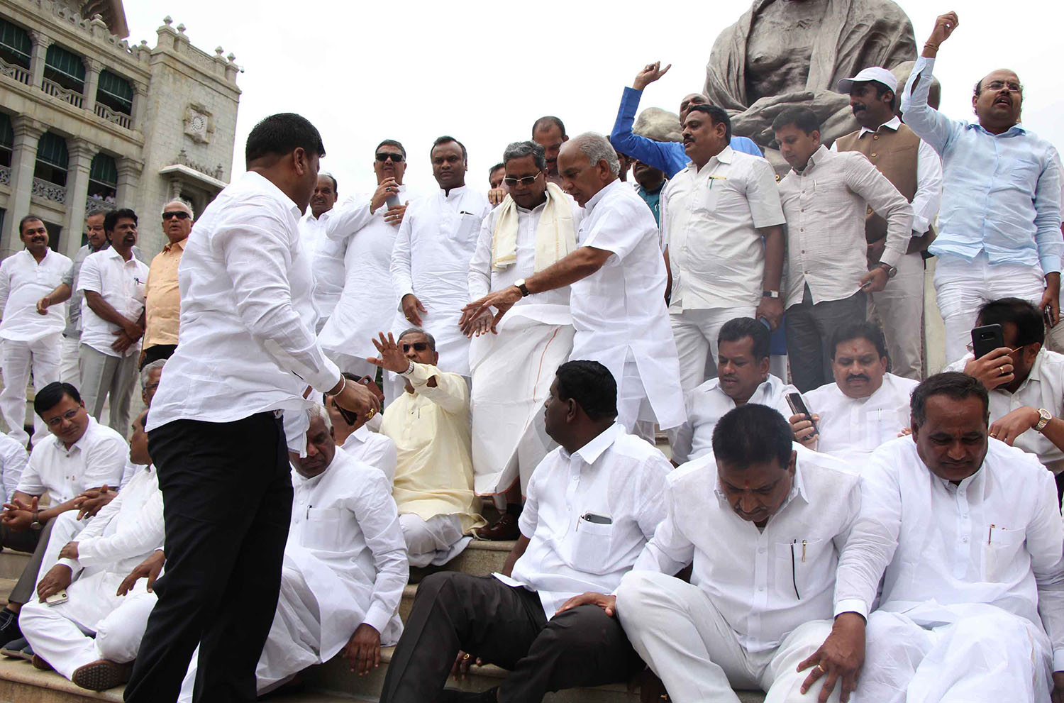 ವಿಧಾನಸೌಧದಲ್ಲಿ ನಡೆದ ಶಾಸಕಾಂಗ ಪಕ್ಷದ ಸಭೆಯ ಬಳಿಕ ಮಹಾತ್ಮ ಗಾಂಧಿ ಪ್ರತಿಮೆ ಬಳಿ ಸೇರಿದ ಎಲ್ಲ ಶಾಸಕರು, ಪಕ್ಷ ವಿರೋಧಿ ಚಟುವಟಿಕೆಯಲ್ಲಿ ತೊಡಗಿರುವ ಶಾಸಕರು, ಬಿಜೆಪಿ ರಾಜ್ಯಾಧ್ಯಕ್ಷ ಯಡಿಯೂರಪ್ಪ, ಪ್ರಧಾನಿ ನರೇಂದ್ರಮೋದಿ ಹಾಗೂ ಬಿಜೆಪಿ ರಾಷ್ಟ್ರೀಯ ಅಧ್ಯಕ್ಷ ಅಮಿತ್ ಶಾ ವಿರುದ್ಧ ಘೋಷಣೆಗಳನ್ನು ಕೂಗಿದರು.