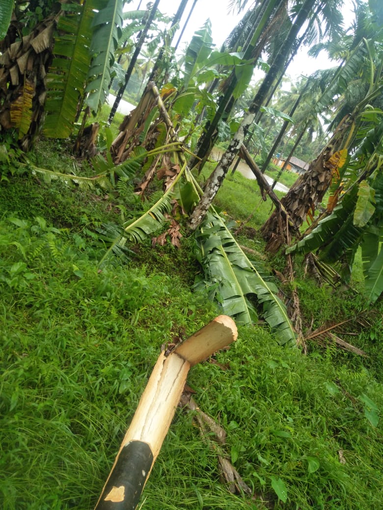 ತೋಟಕ್ಕೆ ಹಾನಿ: ಬುಧವಾದ ಬೀಸಿದ ಬಿರುಗಾಳಿಗೆ ಕುಂದಾಪುರ ತಾಲೂಕಿನ ಯಡಾಡಿ-ಮತ್ಯಾಡಿ ಗ್ರಾಮದ ಸಿರಿಮಠ ಎಂಬಲ್ಲಿ ಸರೋಜಿನಿ ಎನ್.ಶೆಟ್ಟಿ ಅವರ ತೋಟದಲ್ಲಿದ್ದ ಸುಮಾರು 100 ಅಡಿಕೆ ಮರ, ಎಂಟು ತೆಂಗಿನ ಮರ ಗಳಲ್ಲದೇ ಮಾವು, ಚಿಕ್ಕು, ಸಾಗುವಾನಿ ಹಾಗೂ ಹಲಸಿನ ಮರಗಳು ಧರೆಗೆ ಉರುಳಿದ್ದು, ಇದರಿಂದ ಸುಮಾರು ಎರಡು ಲಕ್ಷ ರೂ.ಗಳ ನಷ್ಟದ ಆಂದಾಜು ಮಾಡಲಾಗಿದೆ.