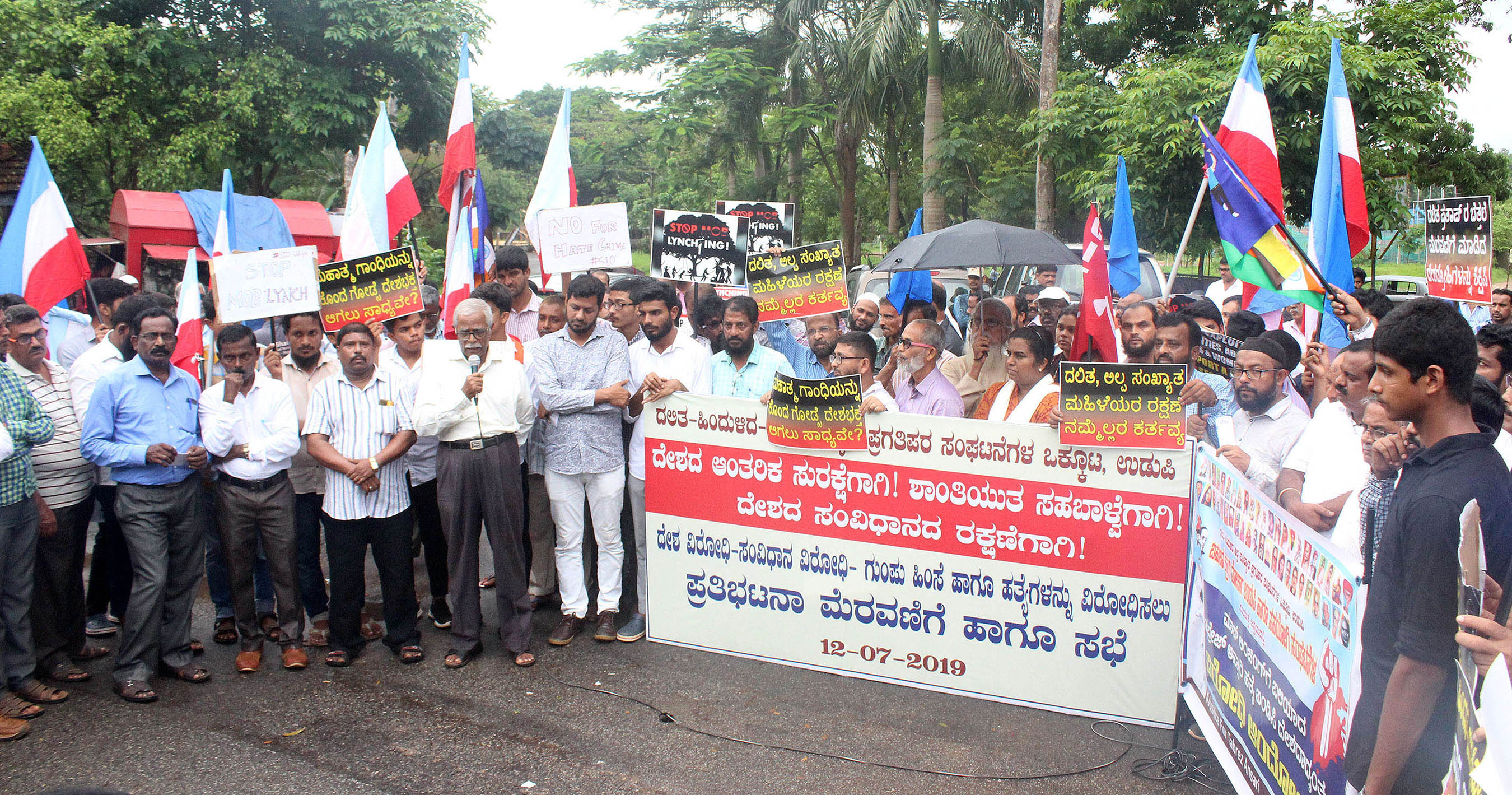 ದಲಿತ ಹಿಂದುಳಿದ ಅಲ್ಪಸಂಖ್ಯಾತ ಪ್ರಗತಿಪರ ಸಂಘಟನೆಗಳ ಒಕ್ಕೂಟ ಉಡುಪಿ ಇದರ ನೇತೃತ್ವದಲ್ಲಿ ಗುಂಪು ಹಿಂಸೆ ಹಾಗೂ ಹತ್ಯೆಗಳನ್ನು ವಿರೋಧಿಸಿ ಶುಕ್ರವಾರ ಉಡುಪಿ ಅಜ್ಜರಕಾಡು ಹುತಾತ್ಮ ಸ್ಮಾರಕದ ಎದುರು ಹಮ್ಮಿಕೊಳ್ಳಲಾದ ಪ್ರತಿಭಟನಾ ಸಭೆಯನ್ನುದ್ದೇಶಿಸಿ ಅವರು ಮಾತನಾಡುತಿದ್ದರು.