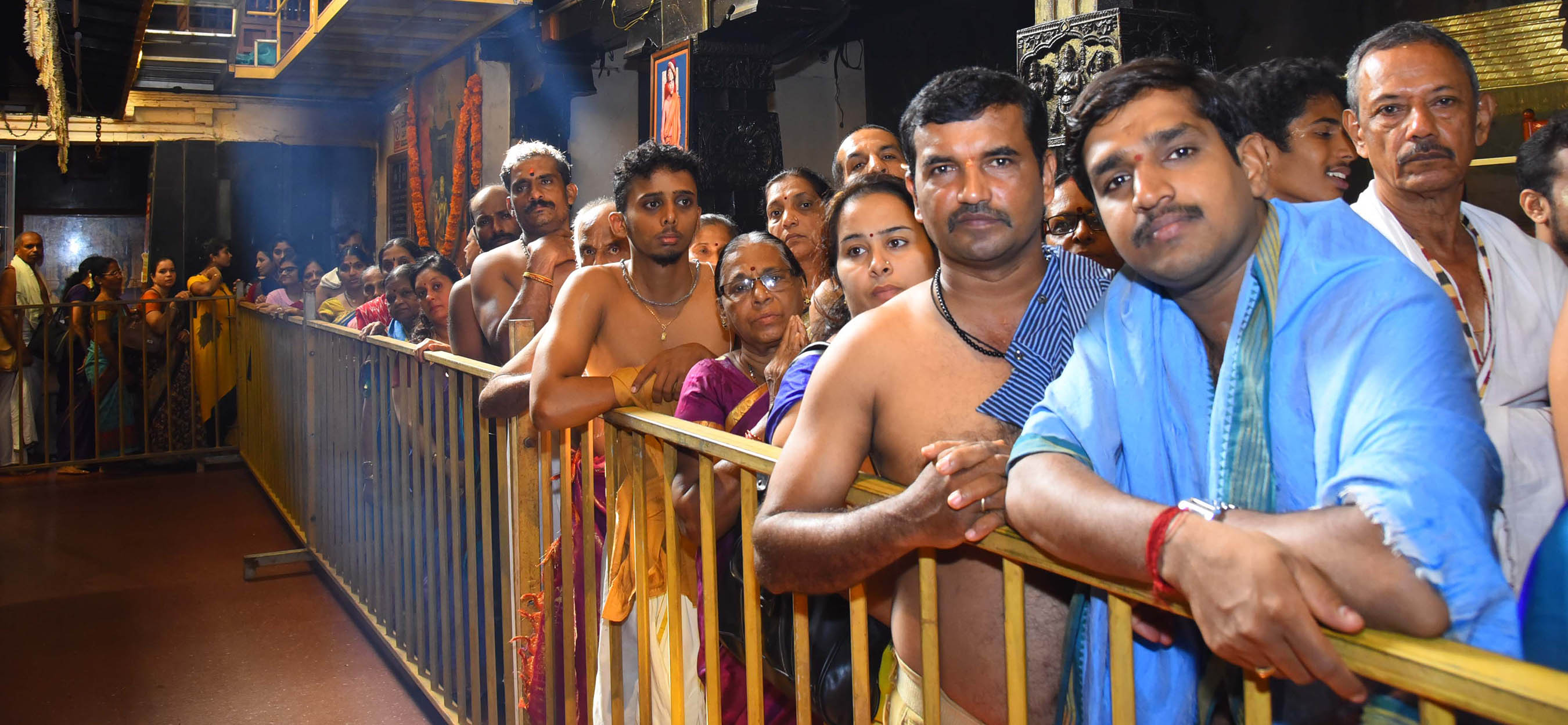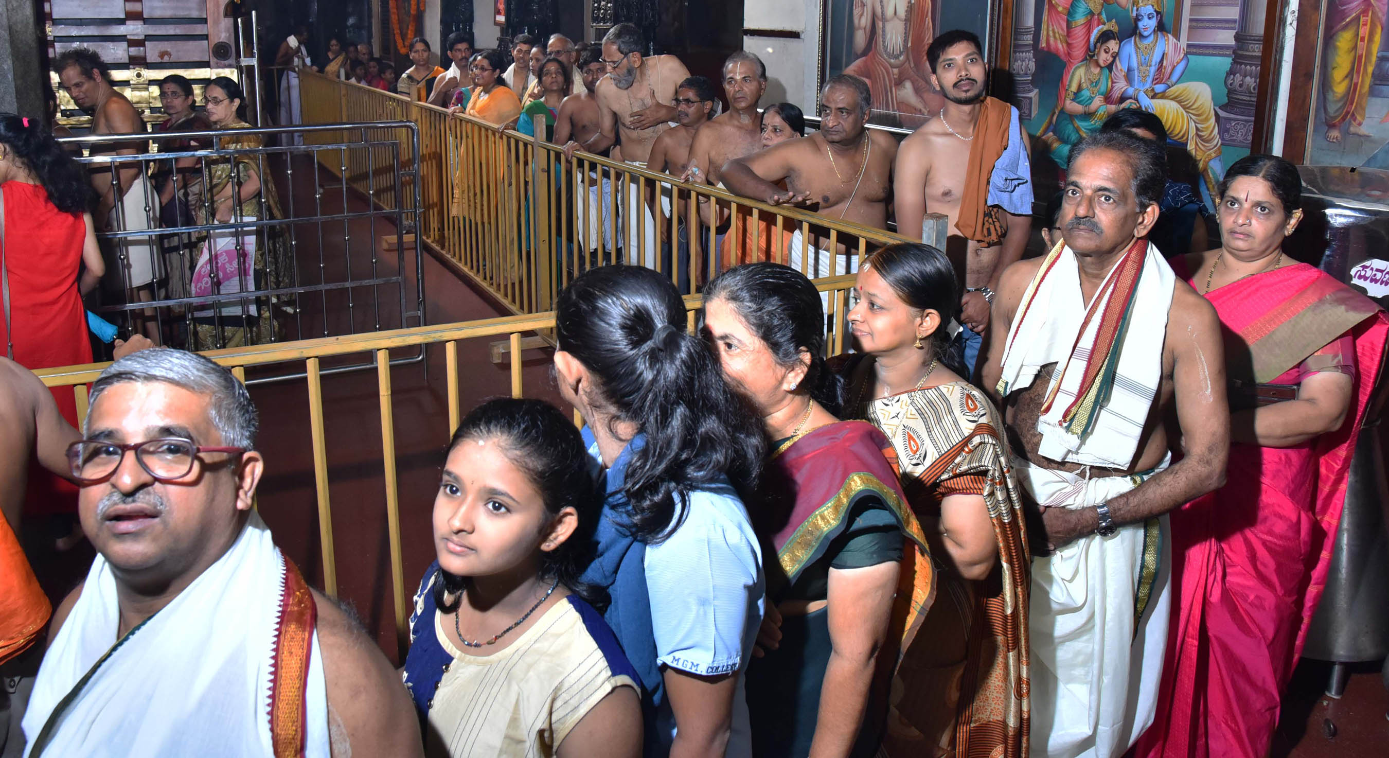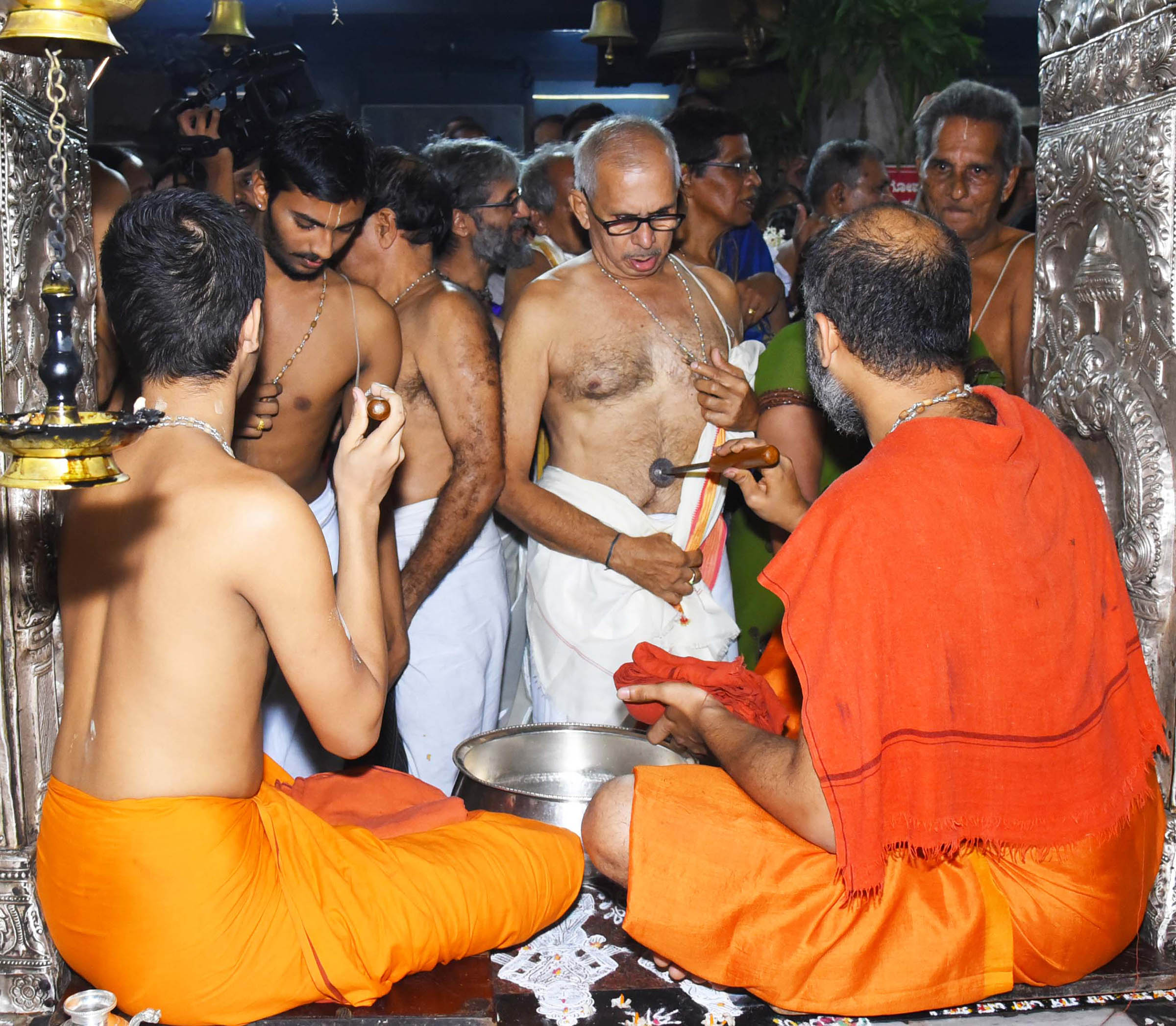 ಉಡುಪಿ, ಜು.12: ಉಡುಪಿಯ ಶ್ರೀಕೃಷ್ಣ ಮಠದಲ್ಲಿ ಶಯನೀ ಏಕಾದಶಿ ಪ್ರಯುಕ್ತ ಪರ್ಯಾಯ ಪಲಿಮಾರು ಮಠದ ಶ್ರೀವಿದ್ಯಾಧೀಶ ತೀರ್ಥರು ಹಾಗೂ ಅದಮಾರು ಕಿರಿಯ ಮಠಾಧೀಶ ಶ್ರೀಈಶಪ್ರಿಯ ತೀರ್ಥರು ಹಾಗೂ ಪಲಿಮಾರು ಕಿರಿಯ ಶ್ರೀವಿದ್ಯಾರಾಜೇಶ್ವರತೀರ್ಥರು ಆಗಮಿಸಿದ ಭಕ್ತಾದಿಗಳಿಗೆ ತಪ್ತ ಮುದ್ರಾಧಾರಣೆ ನಡೆಸಿದರು.