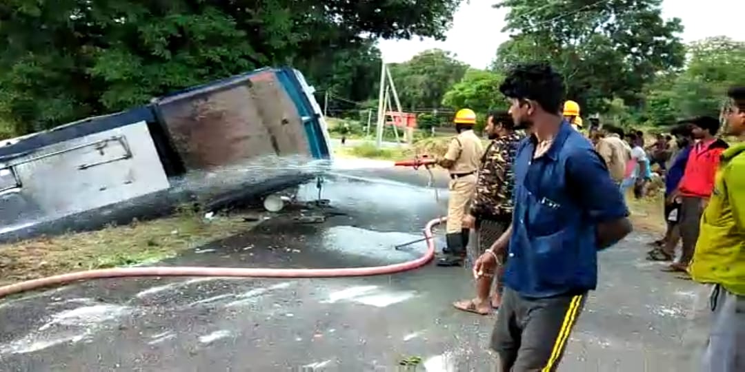 ಹನೂರು : ಪೆಟ್ರೋಲ್ ಟ್ಯಾಂಕರ್ ಪಲ್ಟಿ