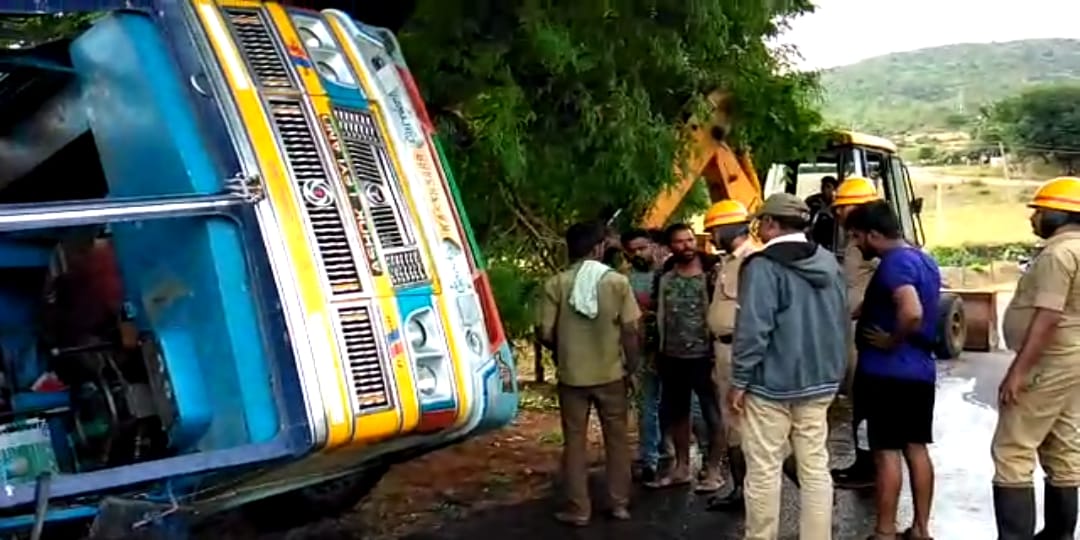 ಬೆಂಗಳೂರಿನಿಂದ ಒಡೆಯರ ಪಾಳ್ಯ ಪೆಟ್ರೋಲ್ ಬಂಕ್ ಗೆ ಹೋಗುತ್ತಿದ್ದ ಟ್ಯಾಂಕರ್ ಒಡೆಯರ ಪಾಳ್ಯ ಸಮೀಪದ ಬೋರೆದೊಡ್ಡಿ ತಿರುವಿನಲ್ಲಿ ಚಾಲಕನ ನಿಯಂತ್ರಣ ತಪ್ಪಿ ಟ್ಯಾಂಕರ್ ಪಲ್ಟಿಯಾಗಿದ್ದು, ಪೆಟ್ರೋಲ್ ರಸ್ತೆ ಪಾಲಾಗಿದೆ.